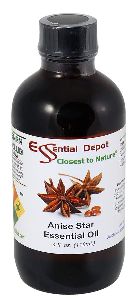Essential Depot Anise Star Essential Oil - GC/MS Tested - Supplied in 4 oz. Amber Glass Bottle with Black Phenolic Cone Lined and Safety Sealed Cap