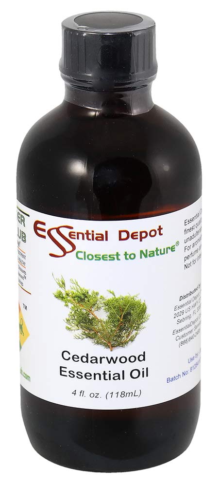 Essential Depot Cedarwood Essential Oil - GC/MS Tested - Supplied in 4 oz. Amber Glass Bottle with Black Phenolic Cone Lined and Safety Sealed Cap