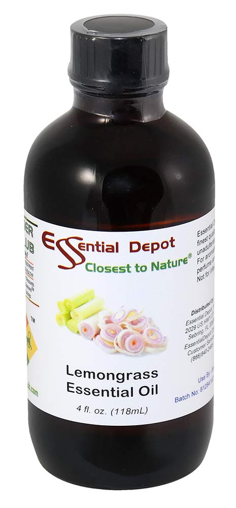 Essential Depot Lemongrass Essential Oil - GC/MS Tested - Supplied in 4 oz. Amber Glass Bottle with Black Phenolic Cone Lined and Safety Sealed Cap