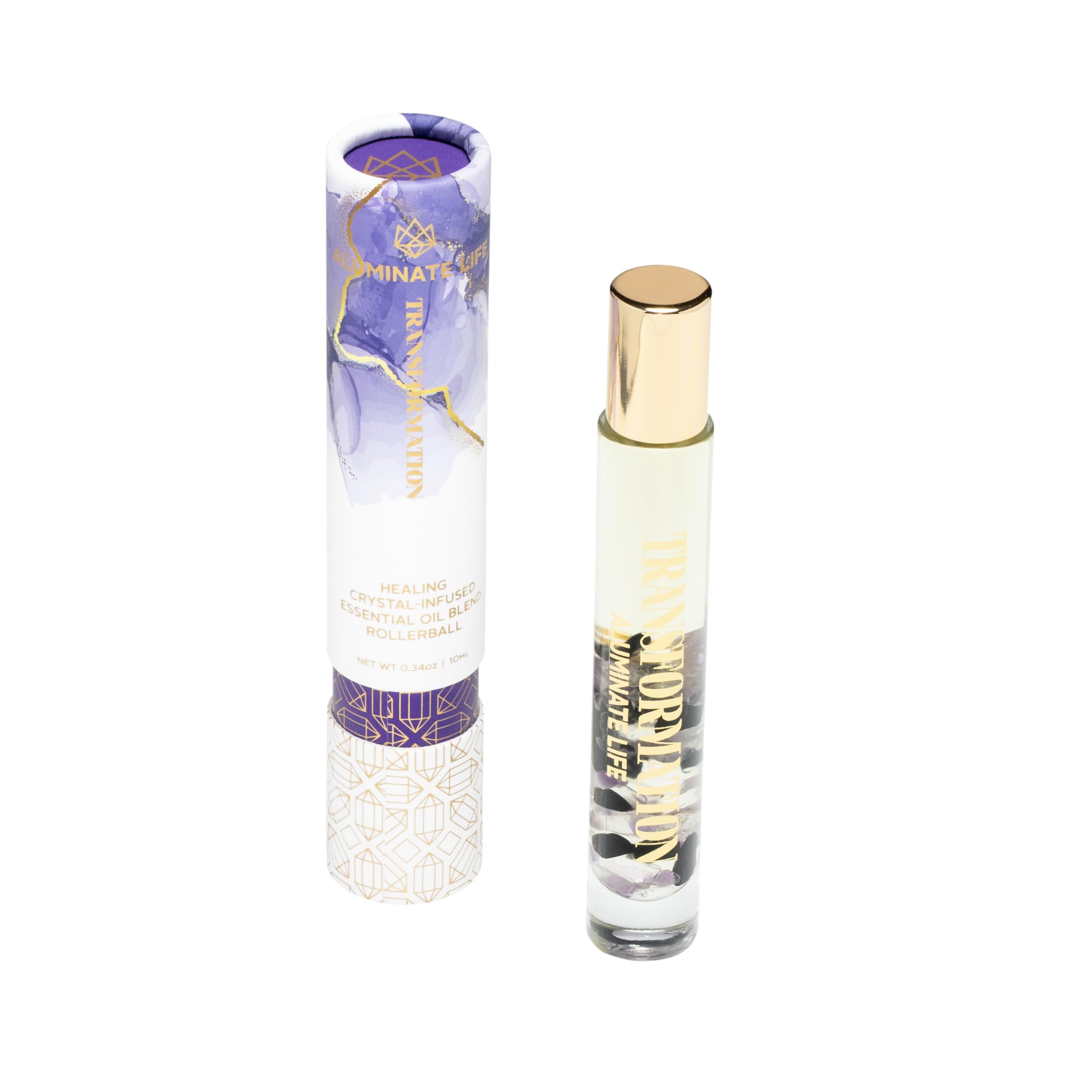 Essential Oil Rollerballs .34 OZ Transformation - Amethyst Crystal Infused - Scents of Jasmine Bergamot Vanilla & Cedar - Aromatherapy Roll On Oils Skin Care Massage Transformation 0.34 Fl Oz (Pack of 1)