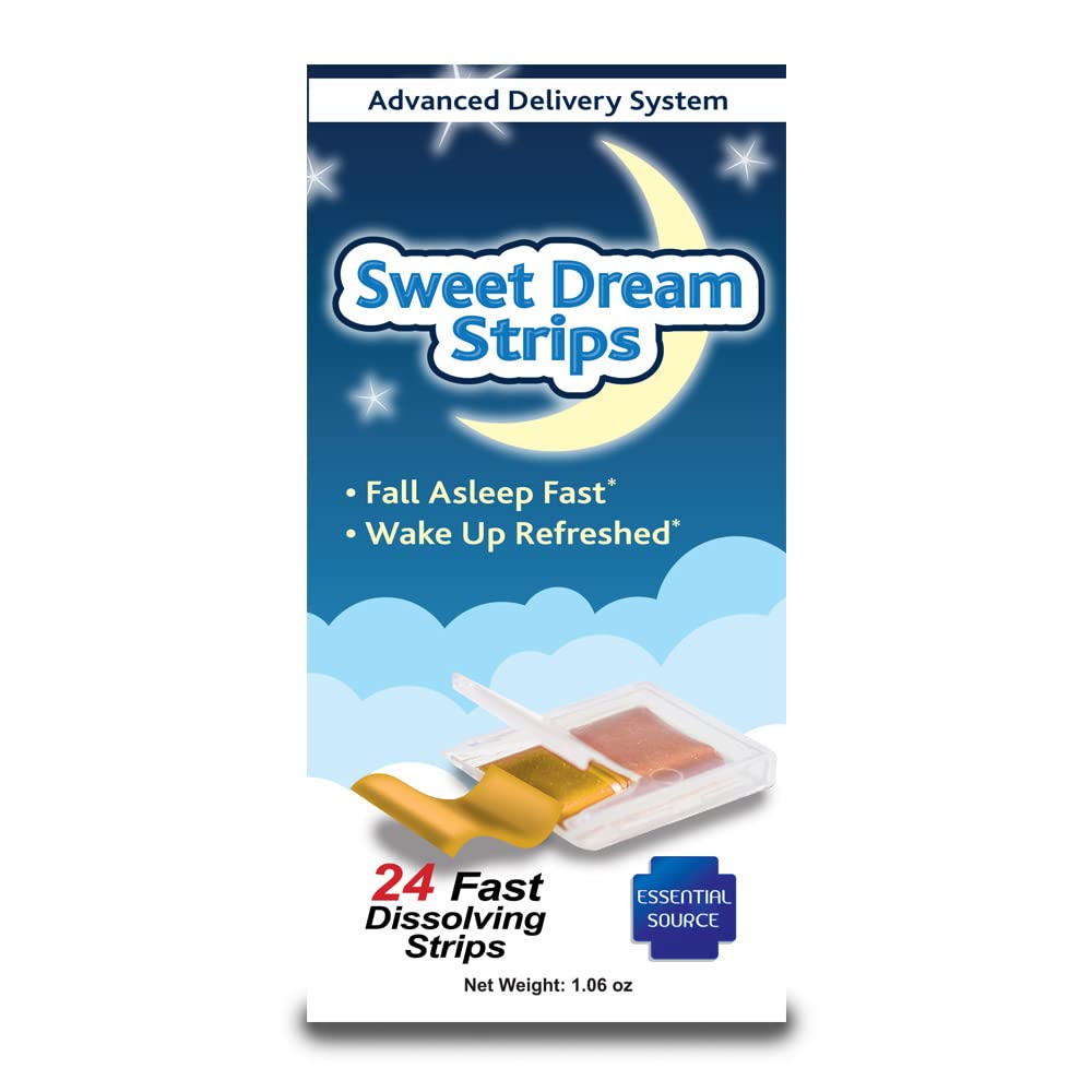 Essential Source Sweet Dream Strips Fast Dissolve Sleep Aid for Relaxation & Restful Nights, Melatonin Sleep Support, Rapid Absorption, Convenient Water-Free Strips, 24 Count