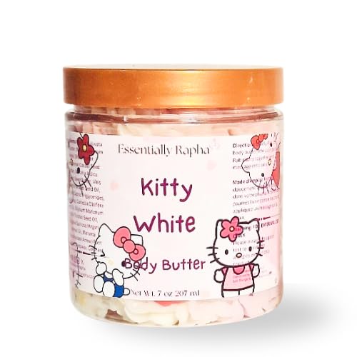Essentially Rapha Kitty White Body Butter - Nourishing butter with Sal Shea and Cocoa - Whipped - Multi Oil Grapeseed Camellia Milk Thistle Seed Oil Long lasting Hydration and Fragrance 7 oz