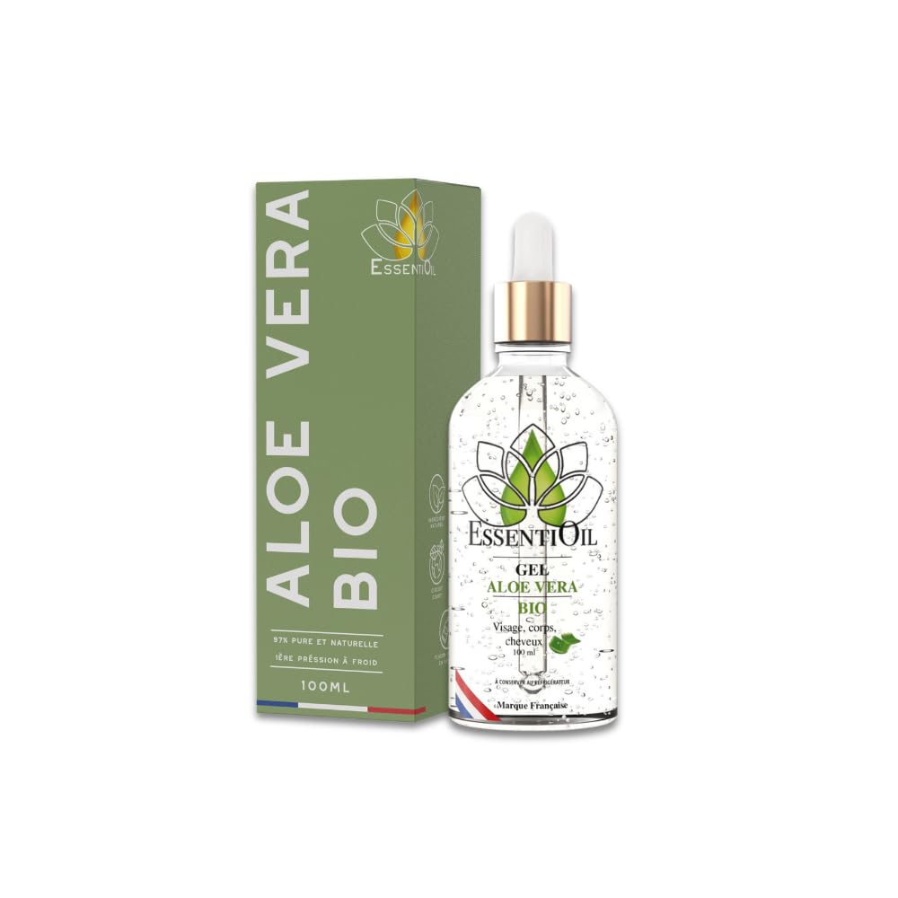 ESSENTIOIL Organic Aloe Vera Gel - Repairs split ends Restores shine to hair - Moisturizes the skin Relieves itching Aloe vera hair gel - 100mL glass bottle - French brand