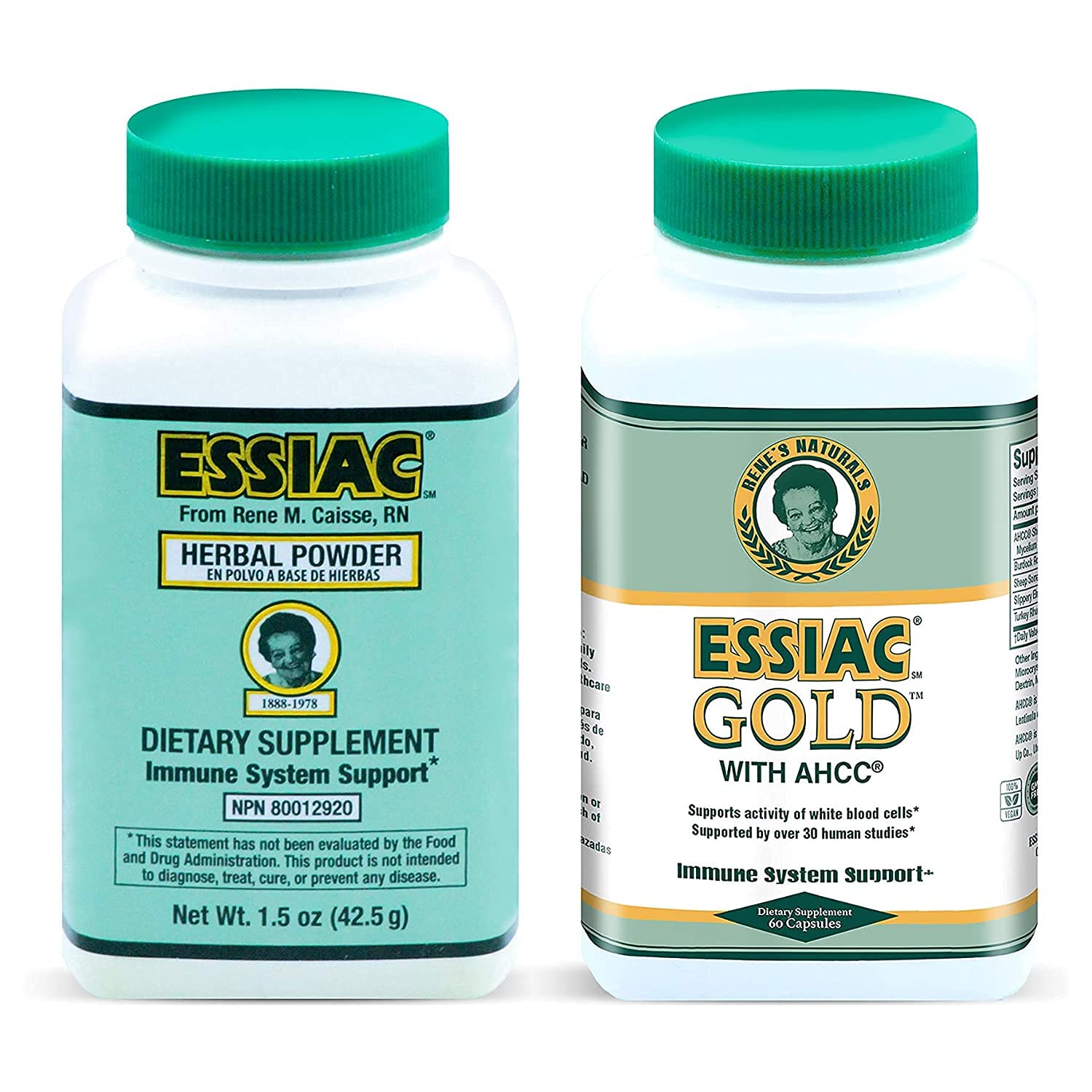 Essiac All-Natural Herbal Tea Powder Gold Herbal Extract with Mushroom Derived AHCC - 1.5 oz Bottle & 60 Capsules | Powerful Antioxidant Blend to Help Promote Overall Health & Well-Being
