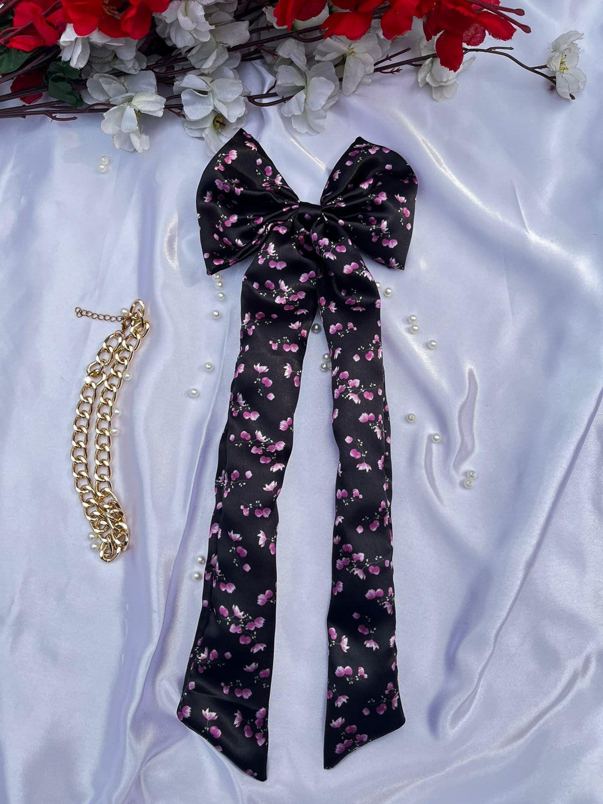 Estationeryhouse Extra Long Big Bow Hair Clips Multi Colored Large Bowknot Hairpin Hair Clip with Long Silky Satin Tail Hair Alligator Clip Accessories for Girls Women 1pc (Black Pink)