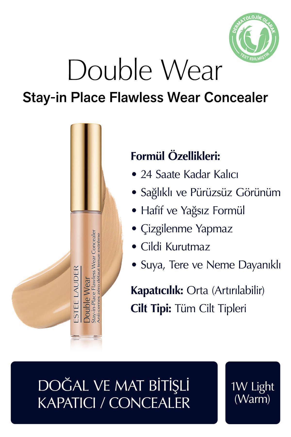 Estee Lauder Concealer - Double Wear Stay-in-Place Flawless Wear Concealer - Color: 1W Light (Warm) 7ml