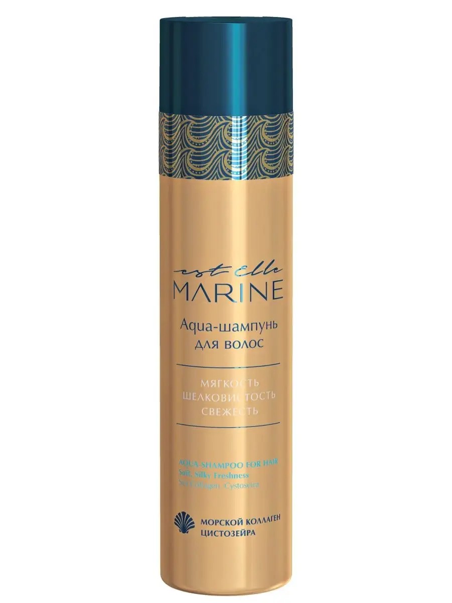 Профессиональный Aqua-шампунь ESTEL EST ELLE MARINE создан для ежедневного ухода за нормальными, сухими и ослабленными волосами. Он бережно очищает кожу головы и локоны, не вызывая раздражения, сохраняя природный баланс. Формула насыщена морским коллагеном, кукурузным крахмалом и увлажняющим компонентом, которые вместе возвращают мягкость, устраняют сухость, улучшают структуру и придают ухоженный вид. Активные компоненты проникают вглубь каждого волоска, восстанавливают эластичность, обеспечивают гладкость и делают расчесывание лёгким. Комплекс растительных экстрактов и молочная кислота помогают удерживать влагу, обеспечивают антистатик эффект, сохраняют сияние и шелковистость. После использования волосы становятся ухоженными, мягкими, сияющими и приятными на ощупь.