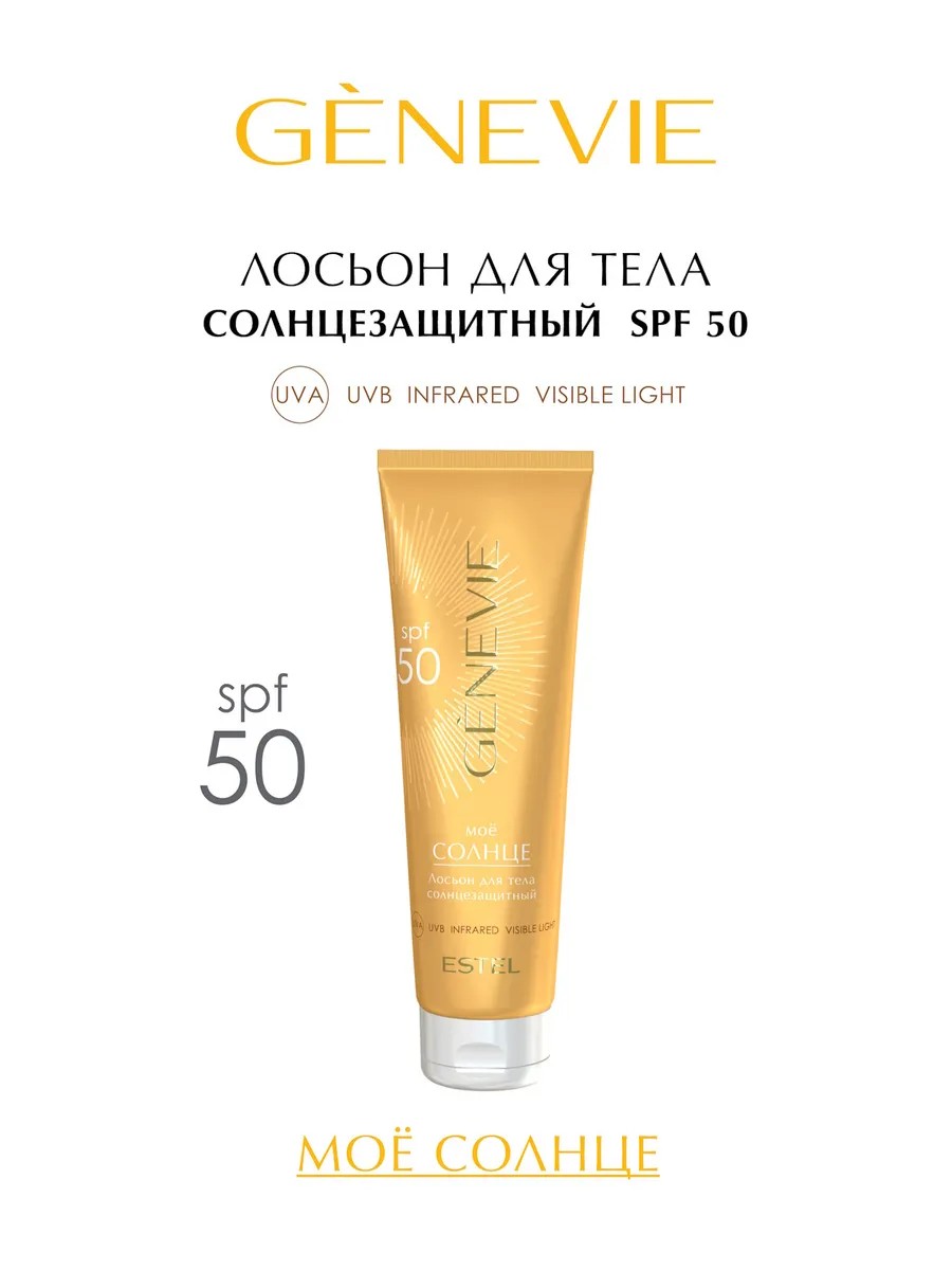 Лосьон для тела GENEVIE ESTEL Мое солнце создан для бережной заботы о коже во время пребывания на солнце. Крем подходит для всех типов кожи, включая чувствительную, и обеспечивает надежную УФ защиту от UVA- и UVB-лучей. Увлажняющий лосьон предотвращает появление пигментации, минимизирует риск солнечных ожогов и замедляет процессы преждевременного старения. Легкая тающая текстура быстро впитывается, легко распределяется как на сухой, так и на влажной коже, не оставляя белых следов и липкости. Увлажняющий комплекс поддерживает водный баланс, сохраняя кожу мягкой, гладкой и ухоженной даже в условиях активного солнца. Экстракт гриба спарассис обладает мощными антиоксидантными свойствами, укрепляет защитный барьер и помогает коже противостоять негативному воздействию внешних факторов. Комбинация ухаживающих компонентов, включая натуральные масла и увлажнители, питает и смягчает, придавая ощущение комфорта и свежести. Крем от загара спф 50 дарит ощущение бархатистой кожи, ухоженный вид и защиту на весь день. Использование крема от солнца помогает избежать пересушивания, шелушений и неровного тона. Кожа становится более эластичной, сияющей и защищенной от неблагоприятного воздействия солнечных лучей. В результате вы получаете ровный оттенок кожи, сохраненную молодость и уверенность в безопасном пребывании на солнце.