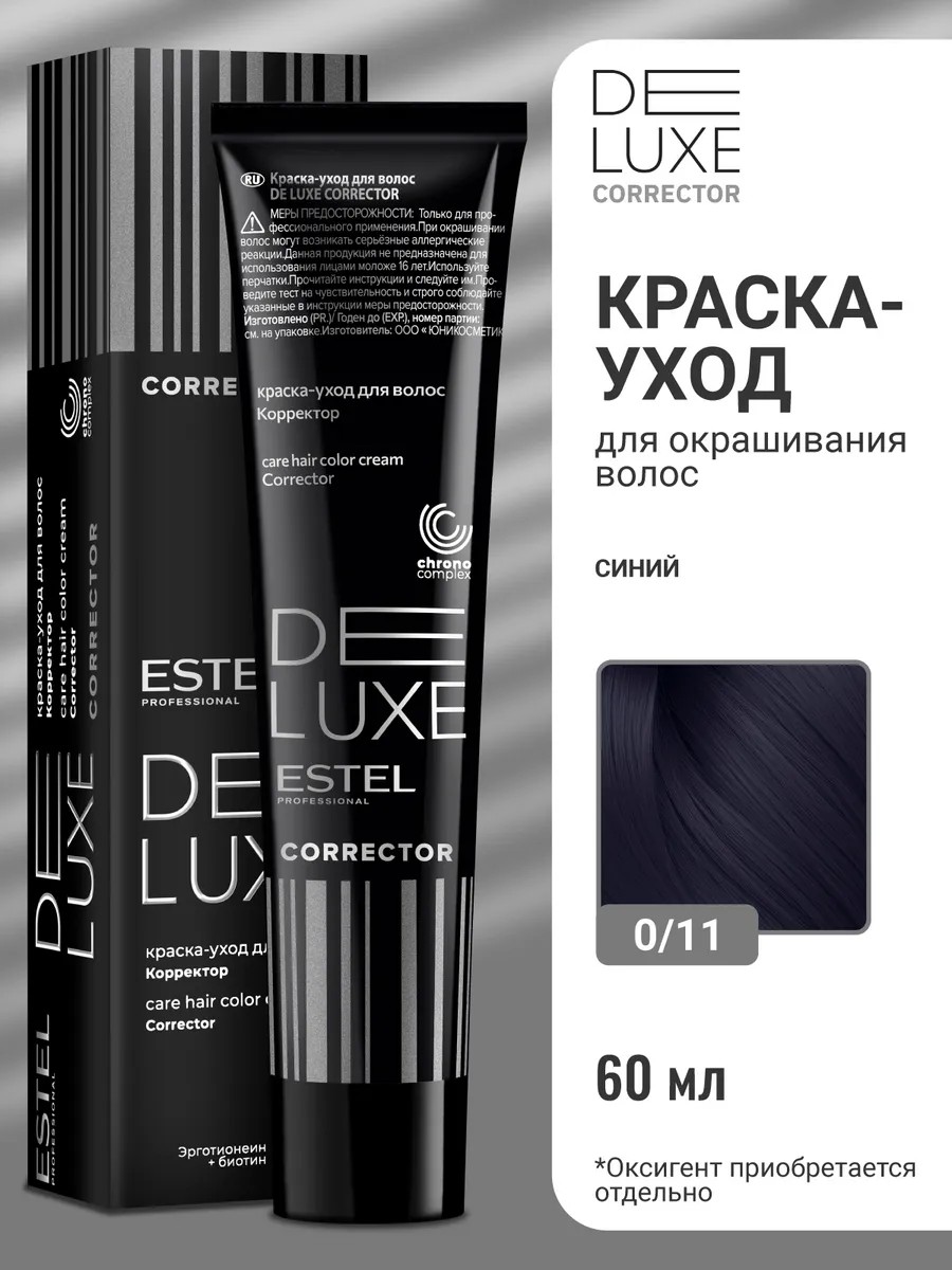 ESTEL DE LUXE CORRECTOR professional hair color is a color corrector that enhances color vibrancy and longevity, or neutralizes unwanted tones. The mix is suitable for all hair types—natural, blonde, highlighted, and color-treated.