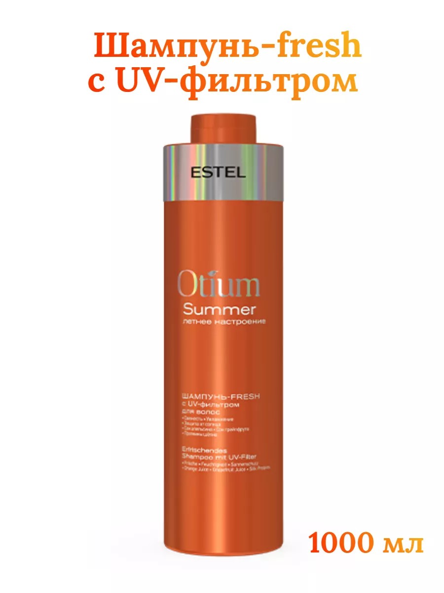 Шампунь-fresh для волос OTIUM SUMMER защита от солнца с UV-фильтром мягко очищает, оставляет ощущение свежести. Протеины шёлка кондиционируют волосы, придают им гладкость. Соки апельсина и грейпфрута богатые витаминами, флавоноидами и фруктовыми кислотами оказывают антиоксидантное действие и увлажняют волосы и кожу головы.