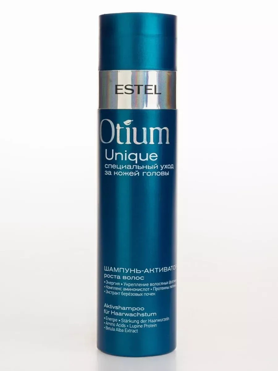 Профессиональный шампунь ESTEL PROFESSIONAL OTIUM UNIQUE разработан для стимуляции роста и укрепления волос, склонных к истончению и против выпадения. Он мягко очищает, активизирует работу фолликулов и запускает восстановительные процессы в коже головы, помогая добиться густоты и плотности. Идеален для ослабленных волос, тонких и редеющих прядей с замедленным ростом. Подходит для регулярного применения в комплексной программе восстановления. Формула содержит аминокислотный комплекс, протеины люпина и экстракт берёзовых почек. Эти компоненты питают корни, улучшают микроциркуляцию, укрепляют структуру и помогают активизировать естественный рост. Дополнительно поддерживается водный баланс кожи головы, устраняется сухость и дискомфорт. Текстура легко распределяется, не утяжеляет, обладает свежим ароматом с нотами лимона, розы, ландыша и кедра. После использования волосы становятся крепче, гуще, лучше растут и дольше сохраняют ощущение свежести у корней. Результат — визуально увеличенная плотность, снижение ломкости и уверенность в красоте своих волос.
