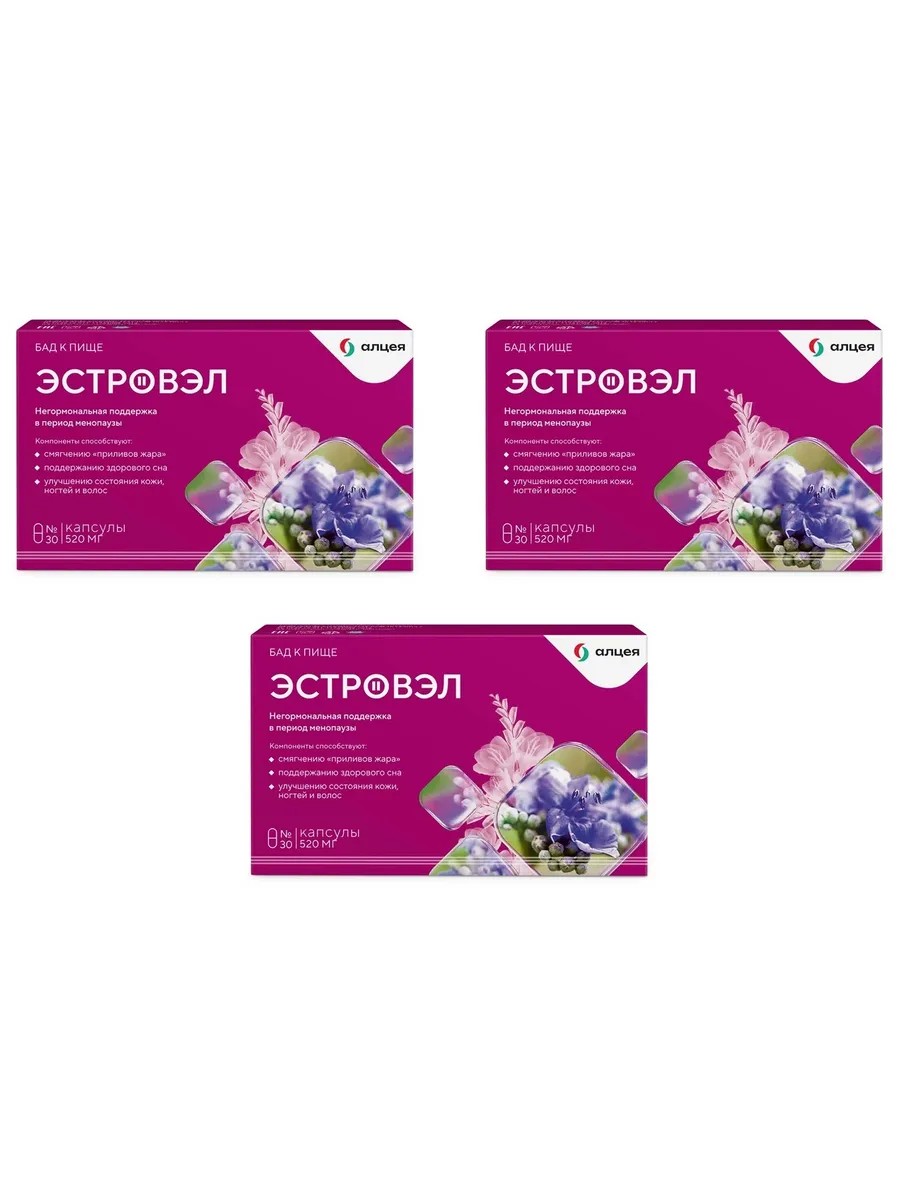 Эстровел ЭСТРОВЭЛ, 30 капсул по 520 мг х 3 уп