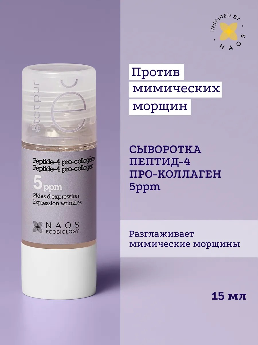 Пептид-4 - мощный бустер коллагена, способствует восстановлению собственного коллагена - белка, необходимого для поддержания упругости и плотности кожи. Он разглаживает мимические морщины на лбу, вокруг глаз и вокруг рта. День за днем морщины исчезают, кожа выглядит более подтянутой.