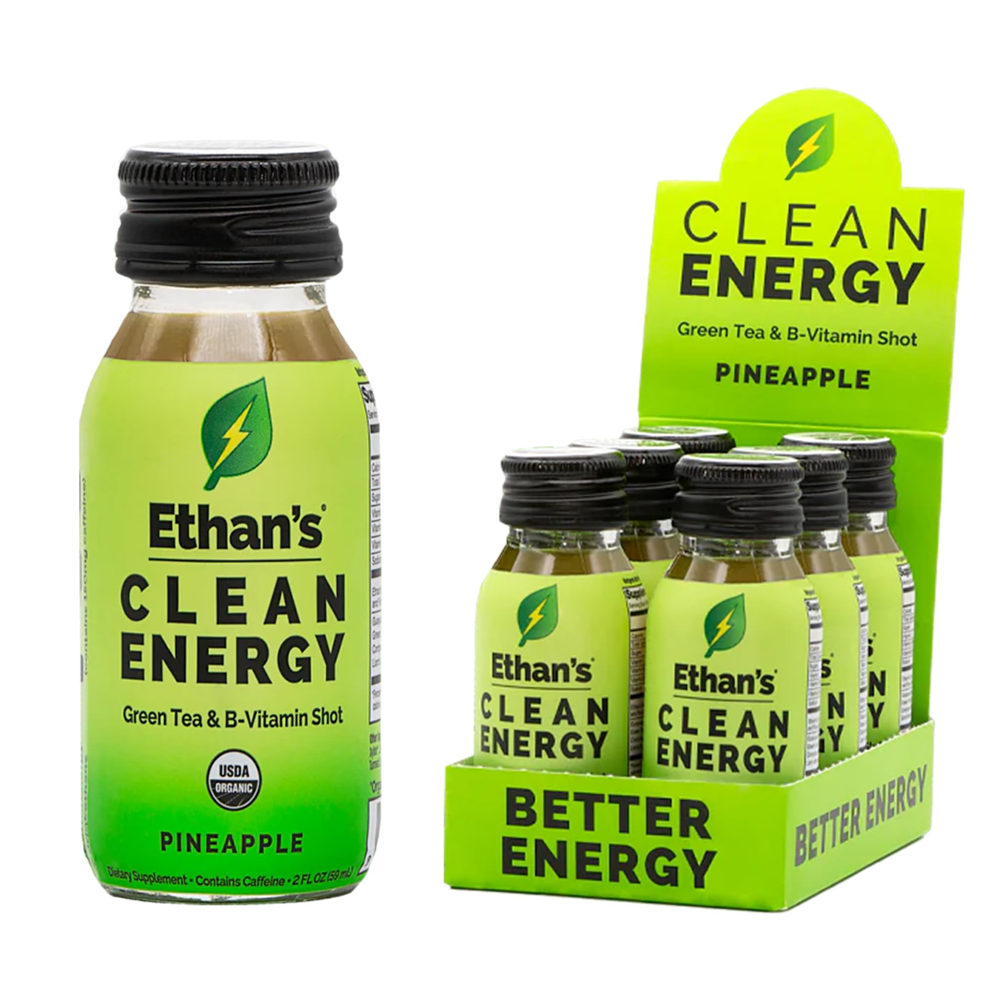 Ethan's Organic Clean Energy Shots Pineapple Sugar Free Natural Pre-Workout Focus Boost Gluten Free Vegan B6 & B12 Vitamin C with Green Tea Extract and Guayusa (6 Pack of 2oz Shots) Pineapple 2 Fl Oz (Pack of 6)