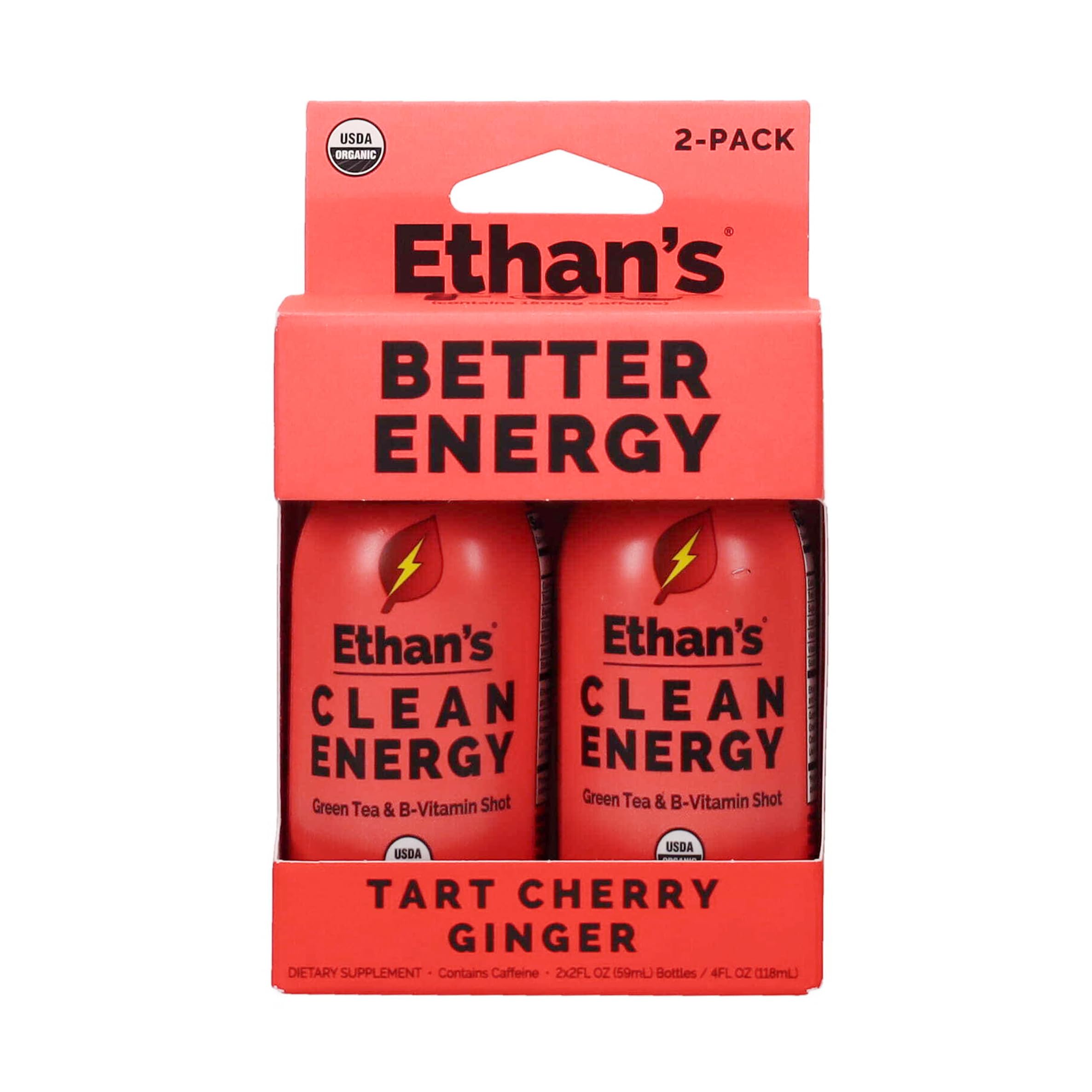 Ethan's Organic Clean Energy Shots Tart Cherry, Sugar Free Natural Pre-Workout Focus Boost, Gluten Free, Vegan, B6 & B12 Vitamin C with Green Tea Extract and Guayusa (2 Pack of 2oz Shots) Cherry,Ginger 2 Fl Oz (Pack of 2)