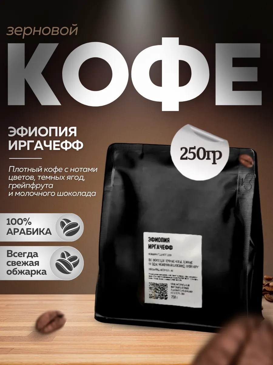 Кофе Эфиопия Иргачефф в зернах 250 грамм. Обжарка 11.09.25
