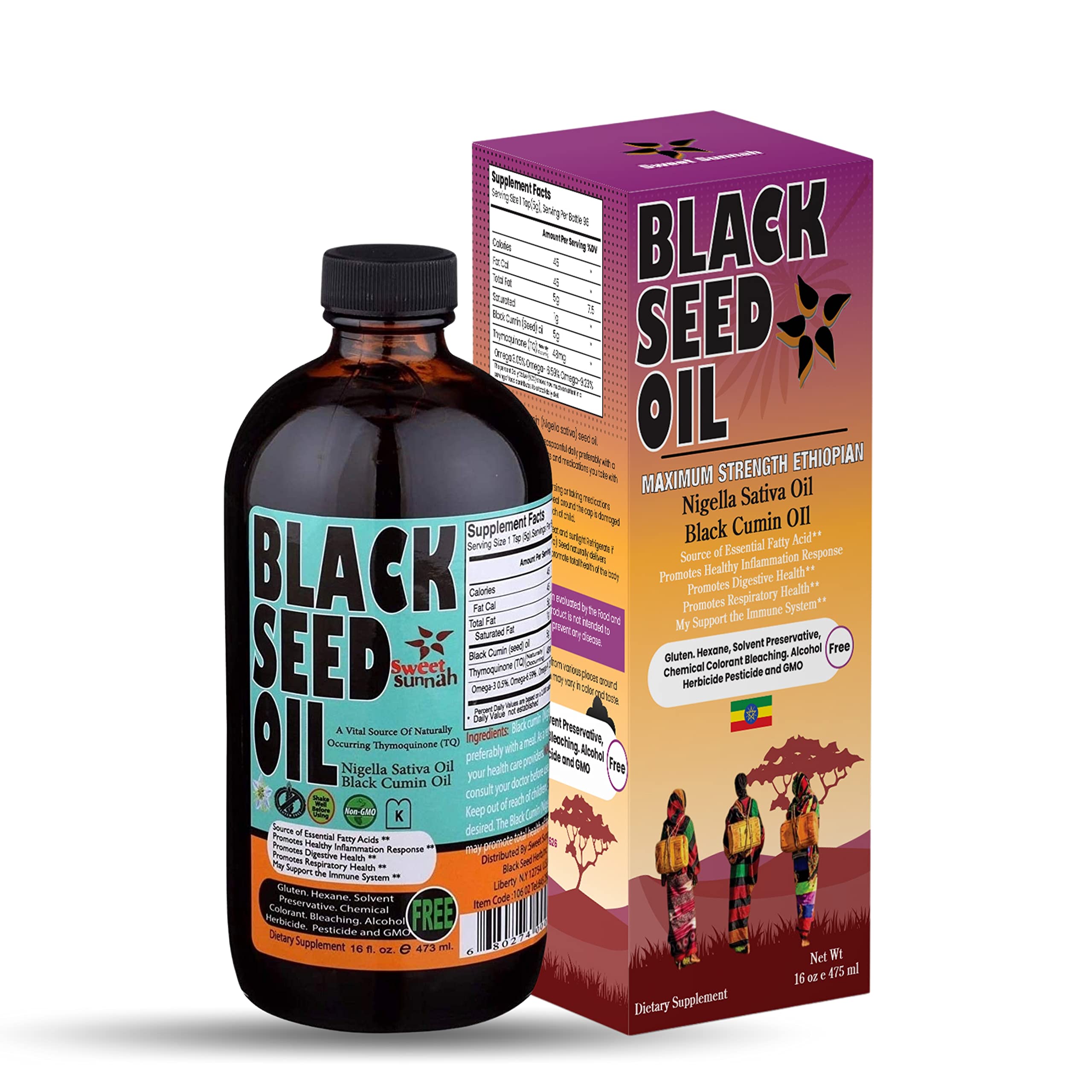 Ethiopian Black Seed Oil - 3.43% Thymoquinone Cold-Pressed Black Cumin Seed from Pure Nigella Sativa - First Pressing Blackseed Non-GMO Improved - 16 Oz Glass Bottle Sweet Sunnah