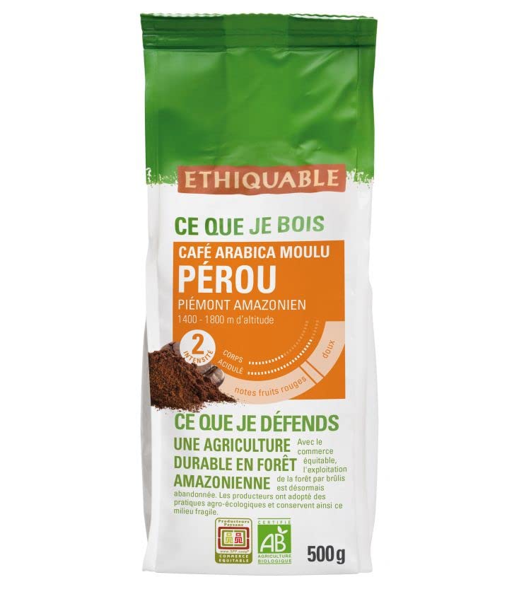 ETHIQUABLE Ethiquable Organic and Fair Trade Ground Coffee from Peru 500g Produced by Small-Scale Farmers