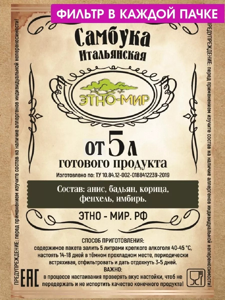ЭтноМир Настойки для самогона и трав Самбука Итальянская от 5 литров