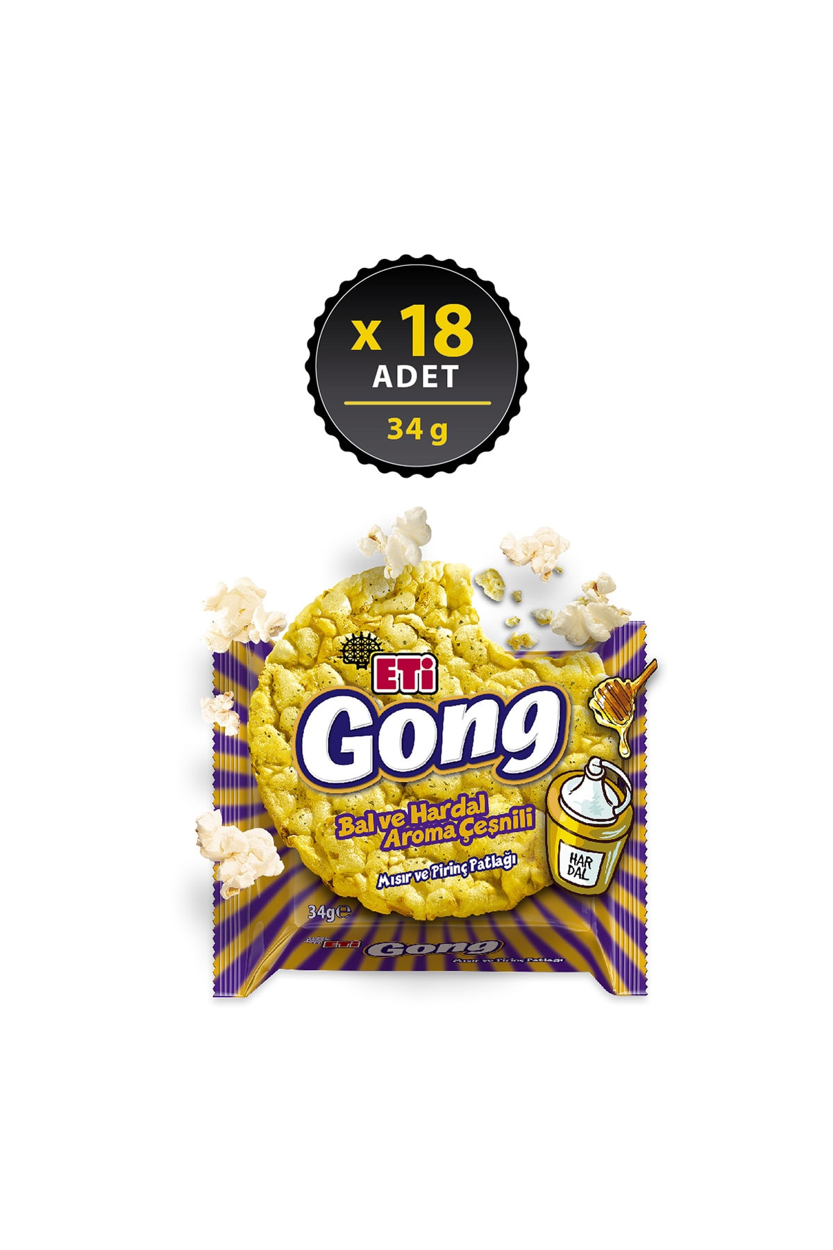 Eti Gong Honey and Mustard Flavored Corn and Rice Crisps 34 g x 18 Pieces
