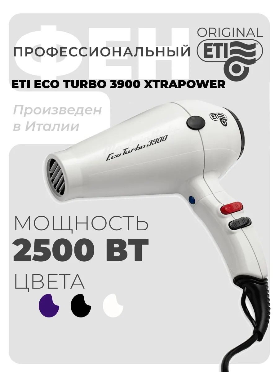 Фен ETI Eco Turbo 3900 Xtrapower 2500 Вт - белый профессионал для идеальной укладки