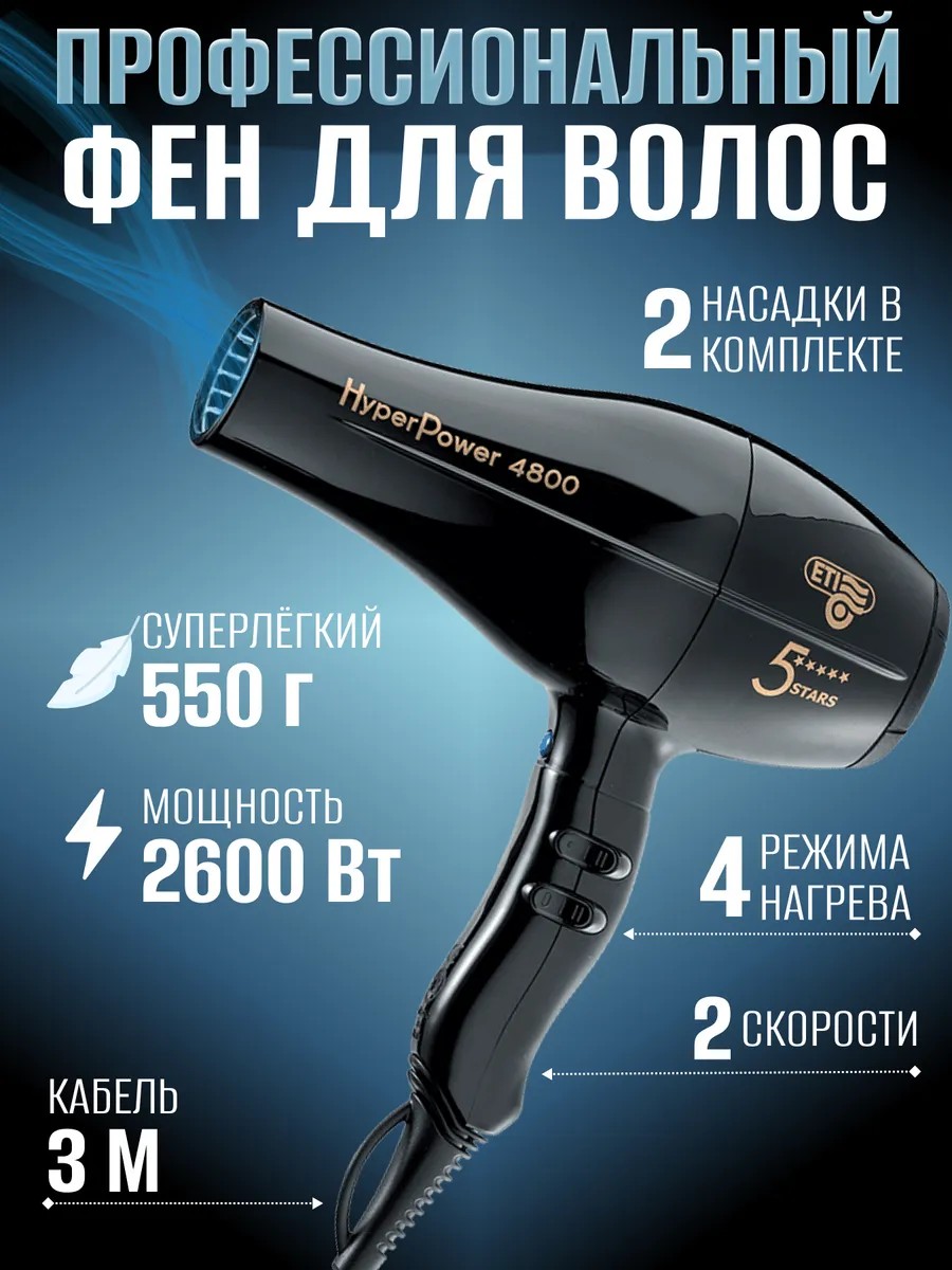 Купите Hyper Power 4800 - мощный, удобный и стильный фен для тех, кто ценит уход и образ. Отличный подарок с гарантией результата.