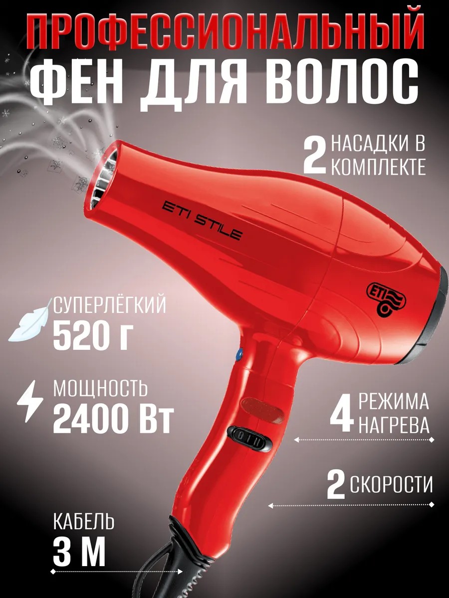 ETI Фен для волос женский профессиональный мощный 2400 Вт