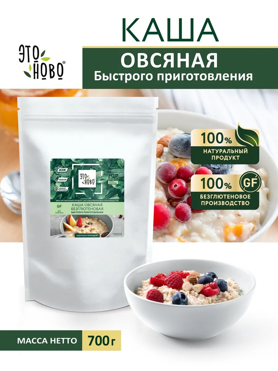 ЭТОНОВО Каша овсяная без глютена хлопья быстрого приготовления, 700г