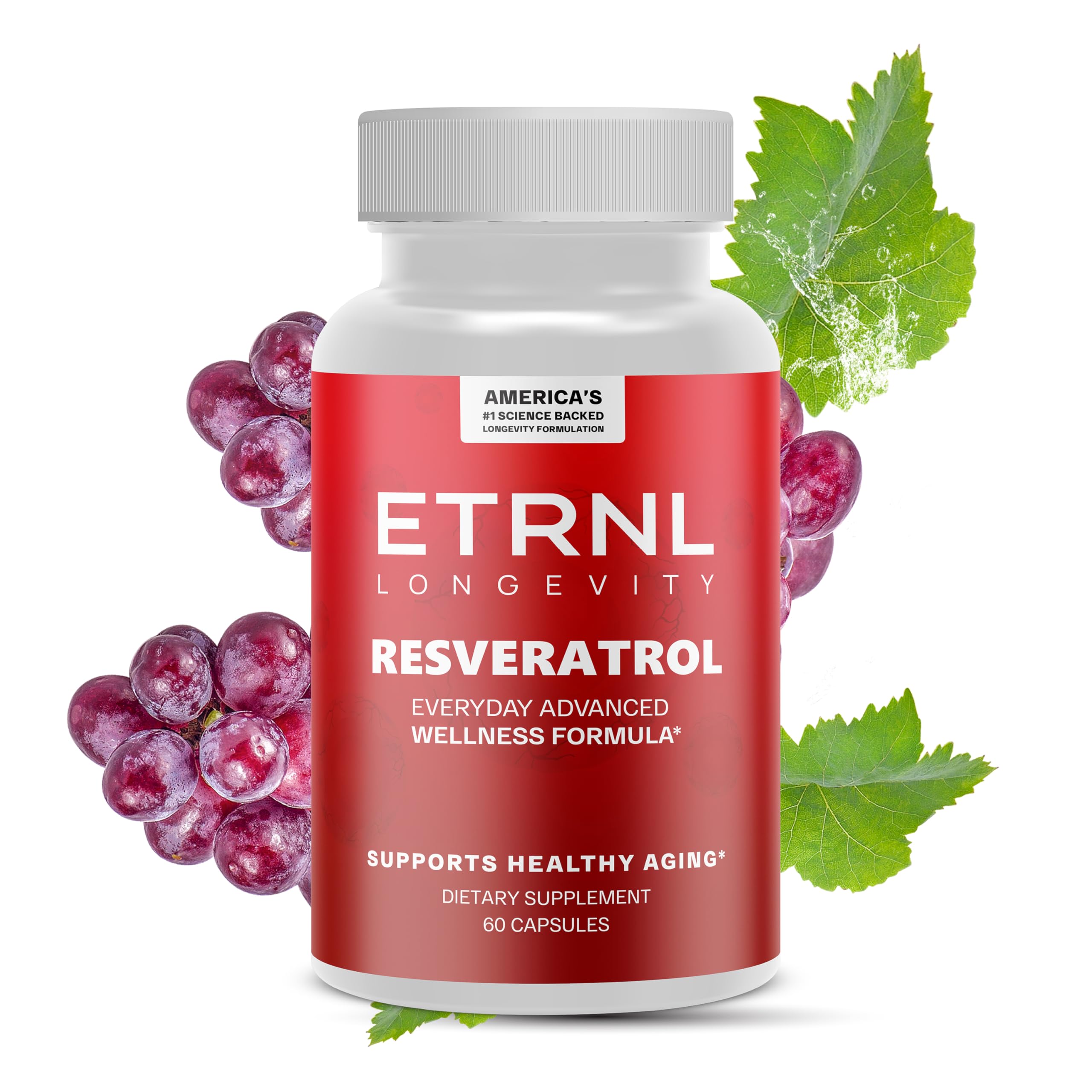 CONVENIENT 60-DAY SUPPLY - Each bottle contains 60 easy-to-swallow vegan capsules for two full months of antioxidant supplementation. Take 1 capsule daily with meals as part of your nutritional routine. Consistent daily use recommended for best results. Experience the ETRNL Longevity difference with premium plant-based supplementation. PREMIUM QUALITY PURITY - Manufactured in USA GMP-certified facilities with rigorous third-party testing for purity and potency. 100 vegan, non-GMO, gluten-free with no artificial additives, colors, fillers, or preservatives. Pure, clean plant-based nutrition in easy-to-swallow vegetable capsules. ADVANCED ANTIOXIDANT FORMULA - Provides concentrated polyphenolic antioxidants from premium trans-resveratrol extract. This natural plant compound is valued for its exceptional antioxidant properties and nutritional profile when combined with proper nutrition and regular physical activity. POTENT POLYPHENOLIC ANTIOXIDANT - Trans-resveratrol is a concentrated polyphenolic antioxidant compound naturally found in plants. Rich in beneficial plant compounds that provide natural antioxidant content when combined with a balanced diet and active lifestyle. Premium botanical supplementation from Japanese Knotweed extract. PREMIUM TRANS-RESVERATROL 600MG BLEND - Each capsule provides 600mg of concentrated resveratrol blend from Japanese Knotweed (Polygonum cuspidatum), standardized to contain both 10 and 50 trans-resveratrol extracts for maximum potency. Pure plant-based polyphenol supplementation for daily nutritional support.