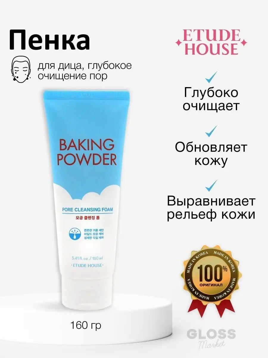 Очищающая пенка Baking Powder Pore Cleansing Foam Etude House это многофункциональное средство для ухода за кожей лица. Густая текстура продукта насыщена мельчайшими гранулами соды, которые производят бережное отшелушивание омертвевшего эпидермиса. В составе средства антисептические, смягчающие, восстанавливающие и поросужающие компоненты. Такая формула улучшает состояние жирной, проблемной и разбалансированной кожи при регулярном применении. Пенка обладает высоким пенообразованием, что определяет его экономичный расход и интенсивные очищающие свойства.Способ применения: Выдавите горошину средства на ладонь, смешайте с небольшим количеством воды, взбейте пену. Нанесите пенку на влажное лицо и помассируйте. Смойте теплой водой. Если у вас проблемная кожа , есть угри или забиты поры , умойтесь несколько раз, особое внимание уделяя зонам, которые нужно очистить тщательнее.