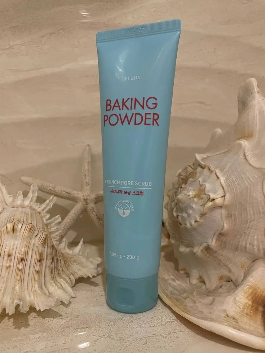 Etude House Baking Soda Facial Scrub, made with 43.5% fine baking soda, effectively cleanses pores of impurities, gently exfoliates dead skin cells, stimulating cellular renewal, and disinfects and brightens the complexion. It has a pleasant cooling effect. The scrub gently but deeply cleanses pores of all types of impurities, absorbs excess sebum, exfoliates, and polishes the skin. 200 ml.