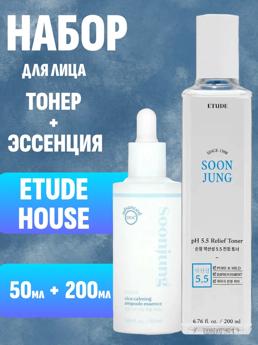 Набор для лица тонер + эссенция от Etude House — это идеальный дуэт для ежедневного ухода за кожей любого типа. Тонер деликатно очищает и освежает кожу, готовя ее к последующему нанесению эссенции. Эссенция, богатая питательными компонентами, интенсивно увлажняет, восстанавливает и придает коже здоровое сияние. Этот набор станет незаменимым помощником в поддержании красоты и молодости вашей кожи. Легкая текстура средств быстро впитывается, не оставляя ощущения липкости. Регулярное использование набора поможет вам сохранить кожу увлажненной, эластичной и сияющей. Подходит для всех типов кожи, в том числе для комбинированной и нормальной.