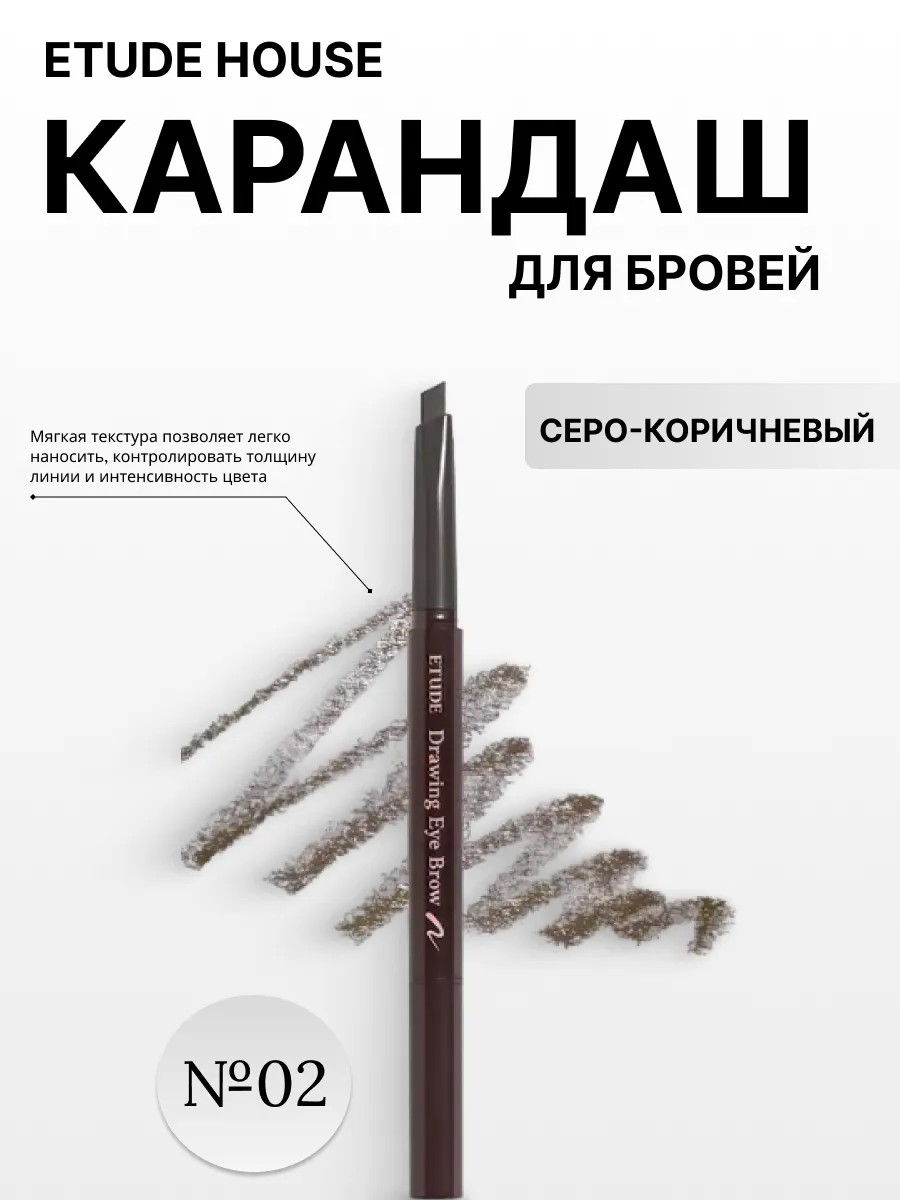 КомплектацияEtude House Карандаш для бровей серо-коричневый 02 Drawing Eye Brow