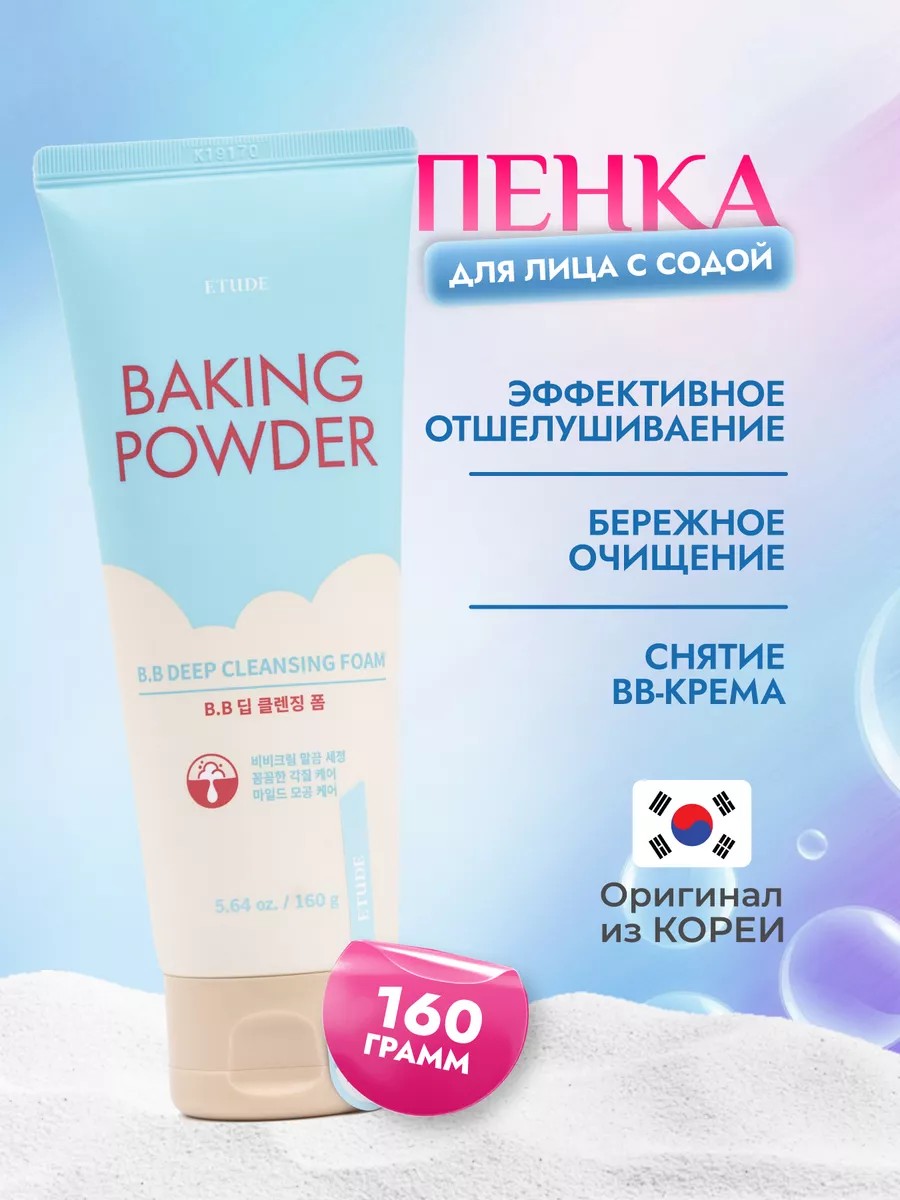 Очищающая пенка для снятия ББ-крема с содой Etude House Baking Powder B.B Deep Cleansing Foam очищает от тональных средств и водостойкого макияжа, проникает вглубь пор, удаляя загрязнения. Абсорбирует излишки кожного себума и оставляя бархатистый матовый финиш. Подсушивает воспаления и сужает поры. Пенка содержит соду, рисовые отруби и бетаин. Пенка этюд хаус с содой для умывания корейского бренда станет незаменимым помощником для любой женщины, которая заботится о своей коже. Мягкая и деликатная пенка, как и гель для умывания, отлично увлажняет и тонизирует. Очищающее средство образует густую мыльную пену и подходит для глубокого очищения кожи и сужения пор в Т - зоне. Также пенка для умывания Корея прекрасна для смывания от остатков макияжа декоративной косметики. Микрогранулы соды проникают глубоко в поры, очищают и предотвращают их закупорку, осветляют черные точки. Премиум средство оценят и парни, мужчины. Профессиональная пенка для очищения прекрасно подходит для удаления с лица загрязнений, макияжа, следов тонального и bb - крема. Уход за кожей из Кореи прекрасен для проблемной кожи в борьбе с несовершенствами. Умывалка от прыщей и акне обладает удобным и экономичным форматом, который позволяет точно дозировать необходимое количество для использования. Достаточно нанести несколько капель, взбить пену и равномерно распределить ее на лице, избегая области вокруг глаз. Пенка для снятия макияжа легко смывается и не оставляет ощущения стянутости или сухости. Корейская умывалка для лица подходит и для подростков с жирной кожей и постакне. Профессиональная умывашка подходит для сухой и нормальной кожи. Наша натуральная уходовая косметика для очищения прекрасна в качестве подарка как часть подарочного бьюти бокса подруге, маме, девушке или любимой жене. Не забудьте захватить демакияж с собой в дорожный набор ухода. Пена для умывания лица и сужения пор подарит вашей коже идеальную красоту, здоровье и сияние.