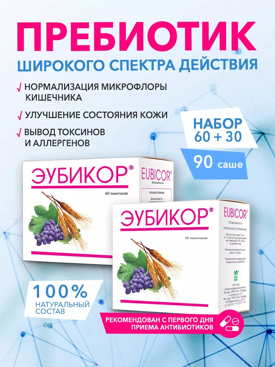 ЭУБИКОР 60+30 пребиотики при запоре, при диарее, для жкт