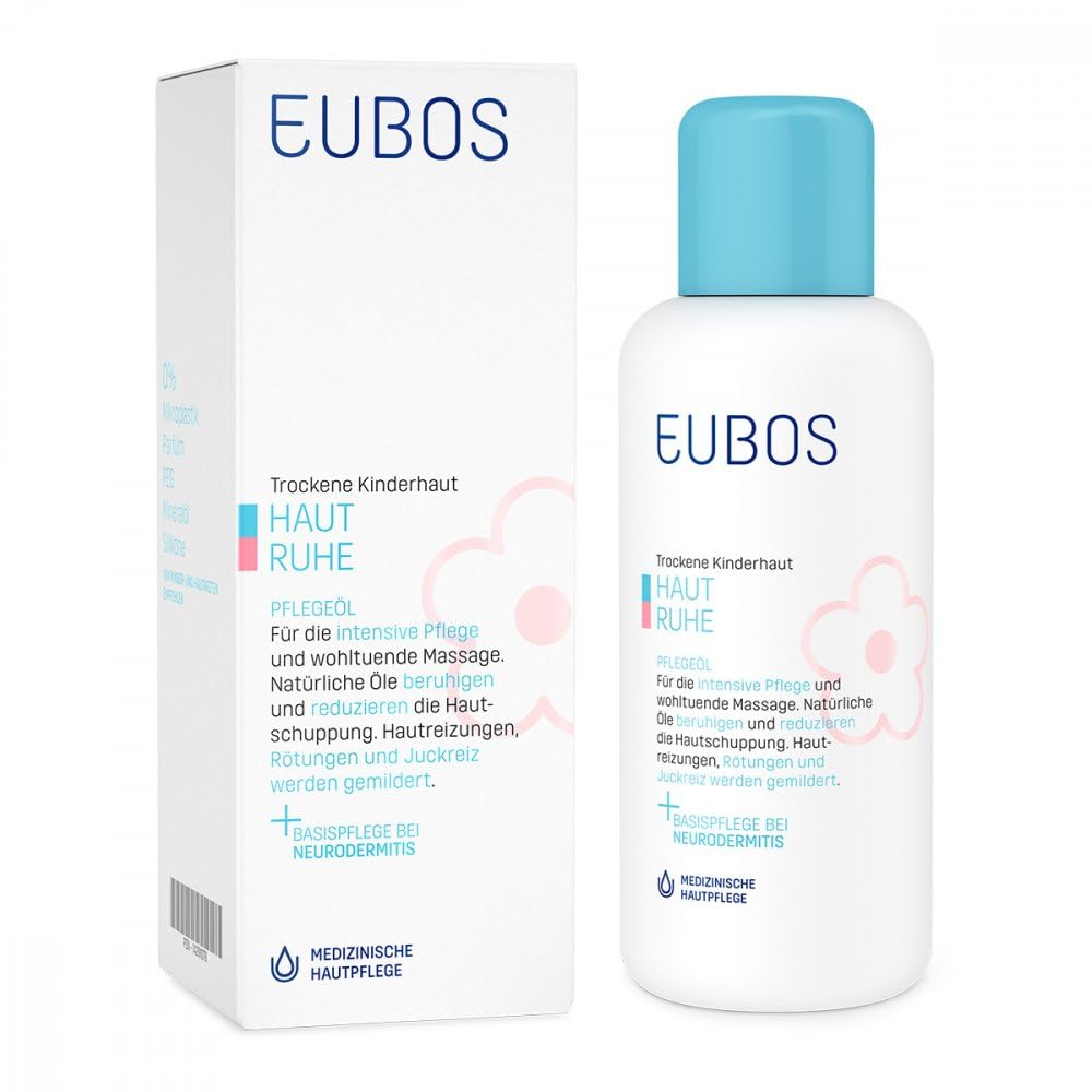 The care for dry, sensitive children's and baby skin. Product properties: Eubos children skin calm care Eubos skin rest care is suitable due to the valuable ingredients as well as the dermatologically and clinically proven compatibility and effects of sensitive skin of babies and children, also therapy with neurodermatitis.The care is recommended by midwives and can be used from 6 months.Also ideal for adults. Provided face and body with valuable lipids, reduces itching and ratings, regenerated and stabbed the skin barrier. Defensile, a vegetable active ingredient complex with extract made of voice seeds, is soothing with sensitive, irritated and cleared skin. Jojoba and almonds are rich in unnecessary, essential fatty stories, have a jacket-fat and ensure intensive care of the skin. Chia?l contains the omega fatty stories 3-6-9, supports the skin's regenerative processes and helps to protect from loss of moisture. Plum kernel, rich in vitamin E, stabs the skin barrier, has an antioxidant effect and shoots against free radicals. Special properties: Paraben-Freipeg-Freifarf?M-Freihne Conservation substance application: Defensile on a vegetable basis with valuable ?len and the highly effective active ingredient. Apply to the cleaned skin and massage it easily.Suitable for face and body. Effect: The care has a calming effect on the skin and senses.Itching and ratings are reduced, face and body are supplied with valuable lipids.The barrier function is stored and the skin is tender and smooth again. Active ingredients: 10 % jojobael, almond, chia and plum stomach plus defensil. Ingredients: Helicopter Ingredients / ingredients Helianthus Annuus (Sunflower) Seed Oil,Simmondsia Chinensis (Jojoba) Seed Oil,Prunus Amygdalus Dulcis (Sweet Almond) Oil,Prunus Domestica Seed Extract,Salvia Hispanica Seed Oil,Octildodecanol,Tocopherol,Echium Plantagineum Seed Oil,Helianthus Annuus (Sunflower) seed Oil unsaponifiables,Cardiospermum Halicacabum Flower/Leaf/Vine Extract Instructions Please apply the oil to the cleaned skin and easily massage it.Suitable for face and body.For sensitive baby or children's skin and also suitable for adults. Warnings Perfume-free-paraben-free-peg freewain silicone without mineral oil, microplastics. LEGAL NOTICE You ask your doctor or pharmacist about risks and side effects. More free -selling.100 ml oil.PZN-14291076. Das Pflege?l f?r trockene, empfindliche Kinder- und Babyhaut. Produkteigenschaften: EUBOS Kinder HAUT RUHE Pflege?l EUBOS HAUT RUHE Pflege?l ist auf Grund der wertvollen Inhaltsstoffe sowie der dermatologisch und klinisch nachgewiesenen Vertr?glichkeit und Wirkung f?r empfindliche Haut von Babys und Kindern geeignet, auch Therapie begleitend bei Neurodermitis. Das Pflege?l wird von Hebammen empfohlen und kann ab 6 Monaten angewendet werden. Auch f?r Erwachsene hervorragend geeignet. Versorgt Gesicht und K?rper mit wertvollen lipiden, mindert Juckreiz und R?tungen, regeneriert und st?rkt die Hautbarriere. Defensil, ein pflanzlicher Wirkstoffkomplex mit Extrakt aus Herzsamen, wirkt lindernd bei empfindlicher, gereizter und ger?teter Haut. Jojoba- und Mandel?l sind reich an unges?ttigten, essentiellen Fetts?uren, wirken r?ckfettend und sorgen f?r eine intensive Pflege der Haut. Chia?l enth?lt die Omega-Fetts?uren 3-6-9, unterst?tzt die regenerativen Prozesse der Haut und hilft, vor Feuchtigkeitsverlust zu bewahren. Pflaumenkern?l, reich an Vitamin E, st?rkt die Hautbarriere, wirkt antioxidativ und sch?tzt vor freien Radikalen. Besondere Eigenschaften: Paraben-freiPEG-freiParf?m-freiohne KonservierungsstoffeAnwendung: Auf pflanzlicher Basis mit wertvollen ?len und dem hoch effektiven Wirkstoff Defensil. Auf die gereinigte Haut auftragen und leicht einmassieren. F?r Gesicht und K?rper geeignet. Wirkung: Das Pflege?l wirkt beruhigend auf Haut und Sinne. Juckreiz und R?tungen werden gemindert, Gesicht und K?rper mit wertvollen Lipiden versorgt. Die Barrierefunktion wird gest?rkt und die Haut wieder zart und geschmeidig. Wirkstoffe: 10 % Jojoba?l, Mandel-, Chia- und Pflaumenkern?l plus Defensil. Inhaltsstoffe: Heli INHALTSSTOFFE / ZUTATEN Helianthus Annuus (Sunflower) Seed Oil,Simmondsia Chinensis (Jojoba) Seed Oil,Prunus Amygdalus Dulcis (Sweet Almond) Oil,Prunus Domestica Seed Extract,Salvia Hispanica Seed Oil,Octyldodecanol,Tocopherol,Echium Plantagineum Seed Oil,Helianthus Annuus (Sunflower) Seed Oil Unsaponifiables,Cardiospermum Halicacabum Flower/Leaf/Vine Extract GEBRAUCHSANWEISUNG Bitte tragen Sie das Öl auf die gereinigte Haut auf und massieren es leicht ein. Für Gesicht und Körper geeignet. Für empfindliche Baby- oder Kinderhaut und für Erwachsene ebenso geeignet. WARNHINWEISE parfümfreiparabenfreiPEG-freiohne Siliconeohne Mineralölohne MikroplastikDas Öl ist kombinierbar mit dem Haut Ruhe Waschgel Haut und Haar (PZN 06728984) und dem Haut Ruhe Badeöl (PZN 06728978) RECHTLICHE HINWEISE Zu Risiken und Nebenwirkungen fragen Sie Ihren Arzt oder Apotheker. Mehrfreiverkäuflich. 100 ml Öl. PZN-14291076.EUBOS KINDER Haut Ruhe Pflegeöl 100 Milliliter