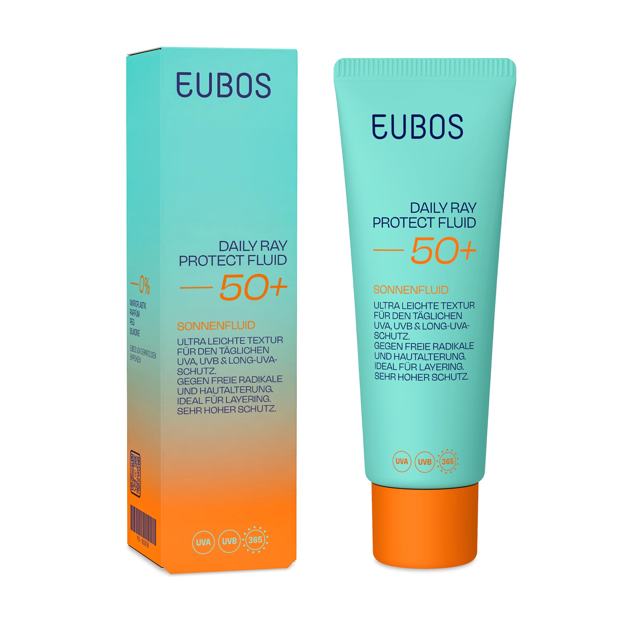 UV rays are one of the main causes of premature skin aging and dark spots, even on cloudy days. DAILY RAY PROTECT FLUID SPF 50 offers optimal protection with a modern broad-band protection system against UVA, UVB, and long UVA rays. Thanks to its ultra-light texture, it absorbs quickly without leaving a sticky residue or white cast. Its formula is enriched with vitamin E and glycerin to combat free radicals and strengthen the skin barrier over time. The fluid can be layered and is perfect for daily use, whether for skincare, as a makeup base, or to refresh your hair on the go. Free from critical UV filters, microplastics, perfume, PEGs, and silicones, the product impresses with its skin-friendly composition and dermatologically tested tolerance, making it ideal even for sensitive skin. DAILY RAY PROTECT FLUID SPF 50 effectively protects the skin, supports its youthful appearance, and is environmentally friendly – for healthy, radiant skin every day. DIRECTIONS FOR USE Apply the product before sun exposure and reapply every 2 hours or after physical activity or swimming. SAFETY WARNING For external use only. See moreDermatologically tested – Suitable for sensitive skin and all skin types. Coral reef friendly and free of harmful UV filters, good for the environment. Vitamin E and glycerin provide antioxidant skin protection and intense hydration. Ultra-light texture, absorbs quickly – ideal for daily use over or under makeup. Broad-spectrum SPF 50 protection against UVA UVB and long UVA rays for reliable UV protection.EUBOS Daily Ray Protect Fluid SPF 50 – Protection solaire avec vitamine E et glycérine Protège contre les rayons UV, le vieillissement de la peau et les taches pigmentaires Pour les peauxDESCRIPTION DU PRODUIT DESCRIPTION DU PRODUIT Les rayons UV sont l'une des principales causes du vieillissement prématuré de la peau et des taches pigmentaires, même par temps nuageux. Le DAILY RAY PROTECT FLUID 50 offre une protection optimale avec un système de protection moderne à large bande contre les rayons UVA, UVB et UVA longs. Grâce à sa texture ultra légère, elle pénètre rapidement sans laisser de sensation collante ni blanchir. Sa formule est enrichie en vitamine E et en glycérine pour lutter contre les radicaux libres et renforcer durablement la barrière cutanée. Le fluide peut être appliqué en couche et est parfait pour une utilisation quotidienne, que ce soit pour le soin, comme base de maquillage ou pour rafraîchir vos cheveux en déplacement. Sans filtres UV critiques, microplastiques, parfum, PEG ou silicone, le produit convainc par sa composition douce pour la peau et sa tolérance testée dermatologiquement, idéale même pour les peaux sensibles. DAILY RAY PROTECT FLUID 50 protège efficacement la peau, soutient sa jeunesse et est respectueux de l'environnement – pour une peau saine et rayonnante tous les jours. MODE D'EMPLOI Appliquer le produit avant l'exposition au soleil et le réappliquer toutes les 2 heures ou après l'activité physique ou la baignade. AVERTISSEMENT DE SÉCURITÉ Pour un usage externe uniquement Voir plusTesté dermatologiquement - Convient aux peaux sensibles et à tous les types de peau. Respectueux des coraux et exempt de filtres UV nocifs, bon pour l'environnement. Vitamine E et glycérine pour une protection antioxydante de la peau et une hydratation intense. Texture ultra légère, pénètre rapidement - Idéal pour une utilisation quotidienne au-dessus ou sous le maquillage. Protection à large bande SPF 50 contre les UVA UVB et les rayons UVA longs pour une protection UV sûre.