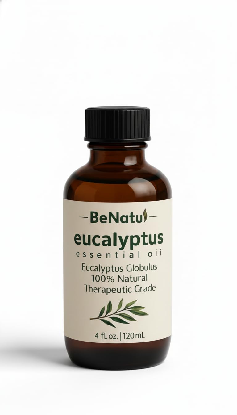 BeNatu Eucalyptus Essential Oil is a natural, refreshing single-ingredient oil ideal for aromatherapy and home use. Its crisp, clean aroma helps create a calming and revitalizing atmosphere in any space, whether used in a diffuser, massage blend, or DIY projects. This pure eucalyptus globulus oil is steam-distilled and suitable for adding to your favorite carrier oil, bath routine, or homemade candles, soaps, and room sprays. Perfect for daily relaxation, home ambiance, and personal wellness rituals.