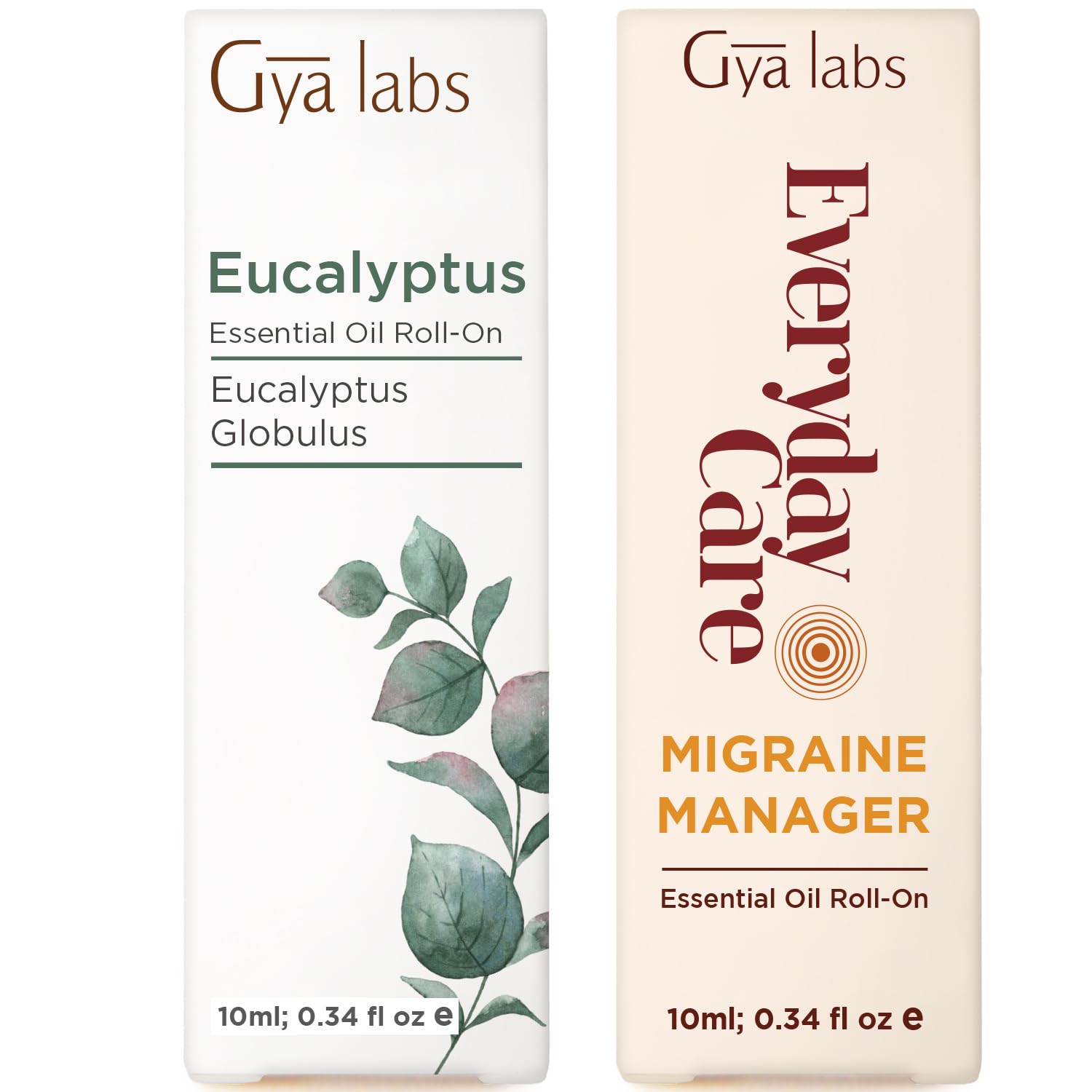 Eucalyptus & Migraine Manager Roll On Set - Essential Oils Aromatherapy Roll On with Essential Oil Set - 2x0.34 fl oz - Gya Labs