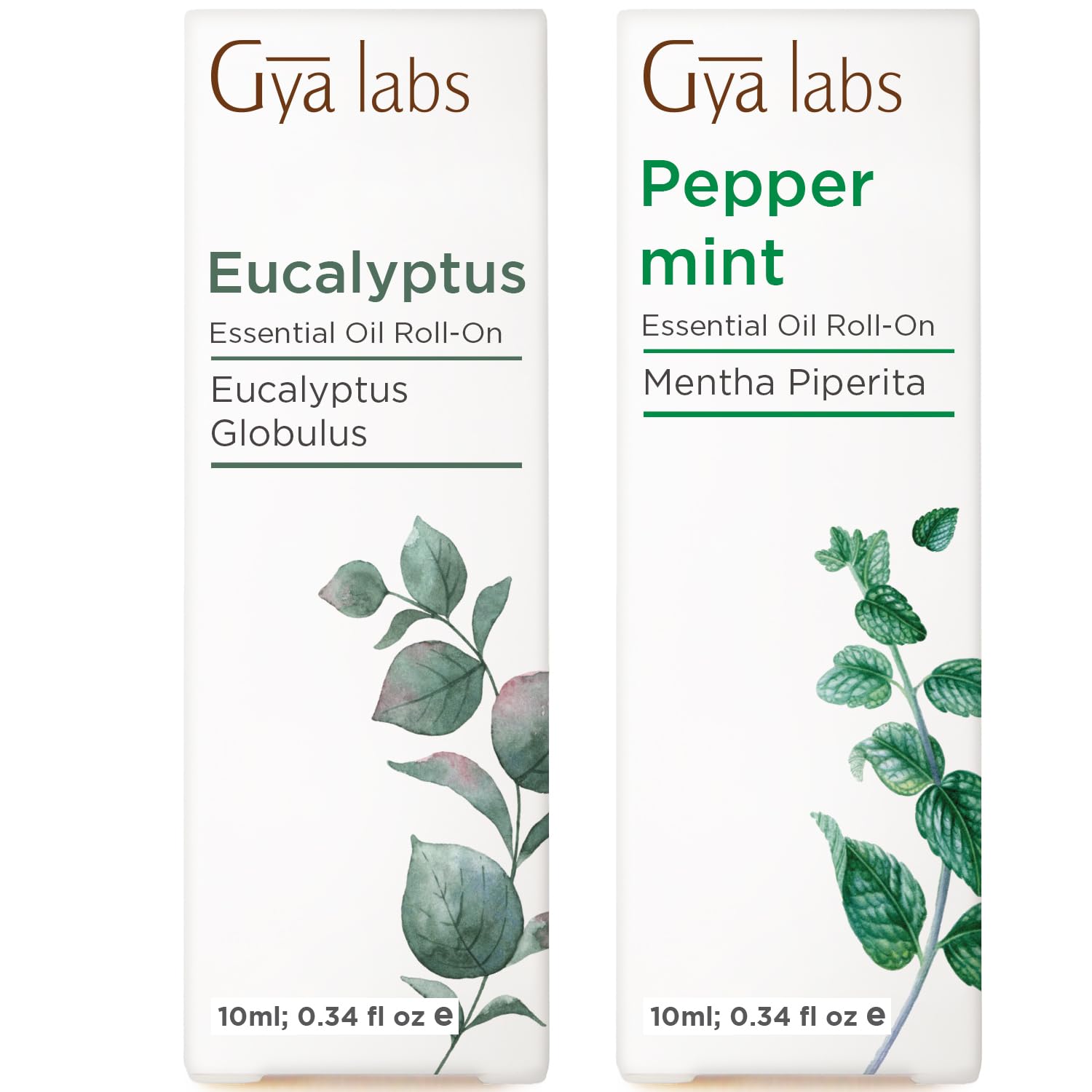 Eucalyptus & Peppermint Roll On Set - Essential Oils Aromatherapy Roll On with Essential Oil Set - 2x0.34 fl oz - Gya Labs