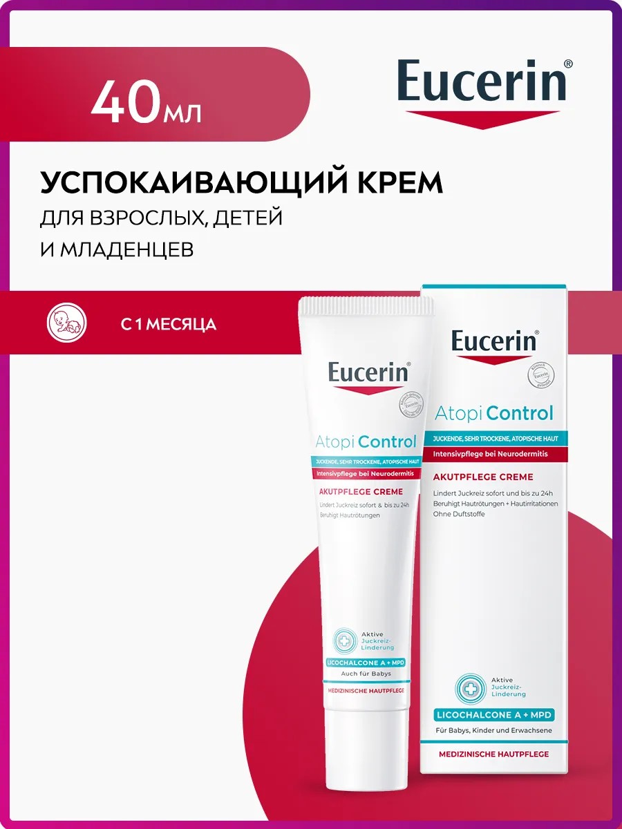 "Успокаивающий крем Eucerin Atopi Control интенсивно ухаживает за атопичной кожей в период обострений, снижая дискомфорт. В его состав входят: