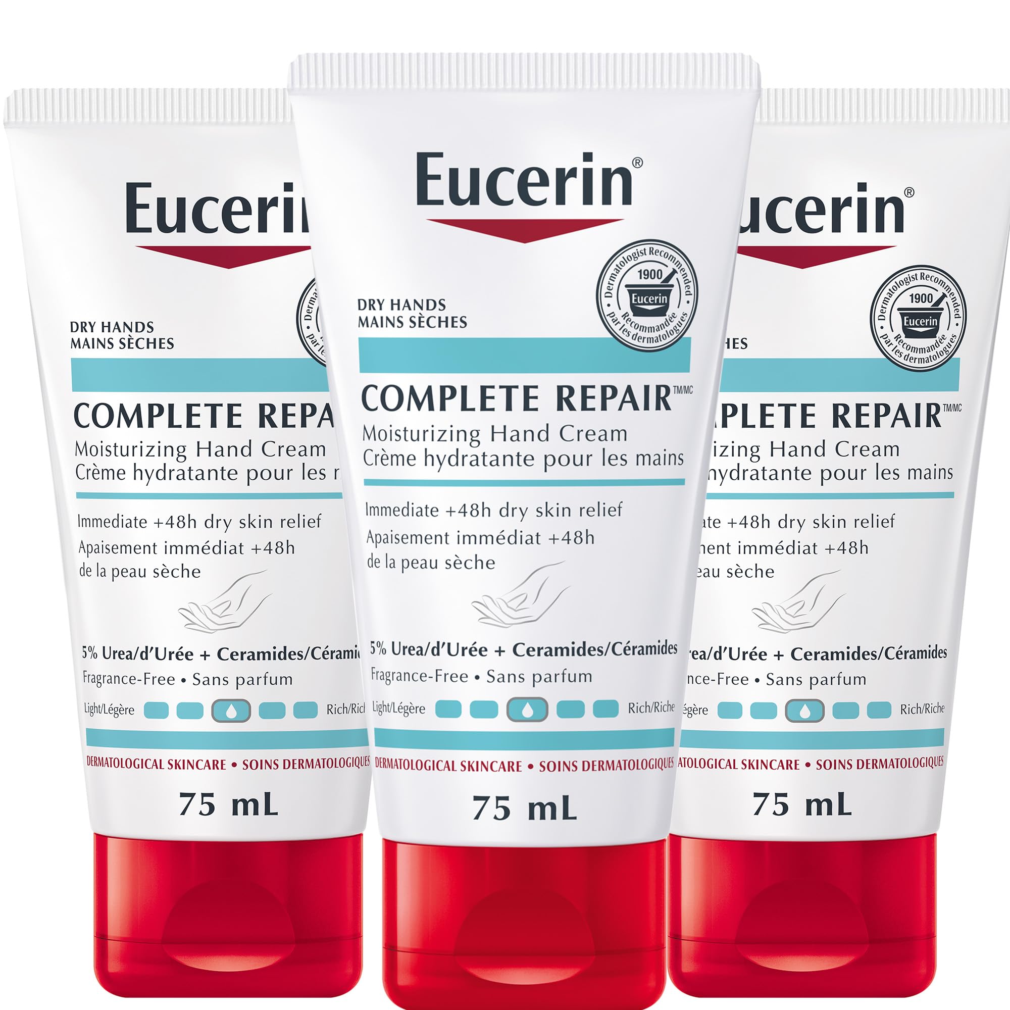EUCERIN Complete Repair Moisturizing Hand Cream | Dry to Very Dry Skin | Eucerin Hand Cream Dry Hands 75mL - Pack of 3 | 5% Urea Cream | Ceramide Cream | Dry Skin Cream | Fragrance-free Cream 75 ml (Pack of 3)