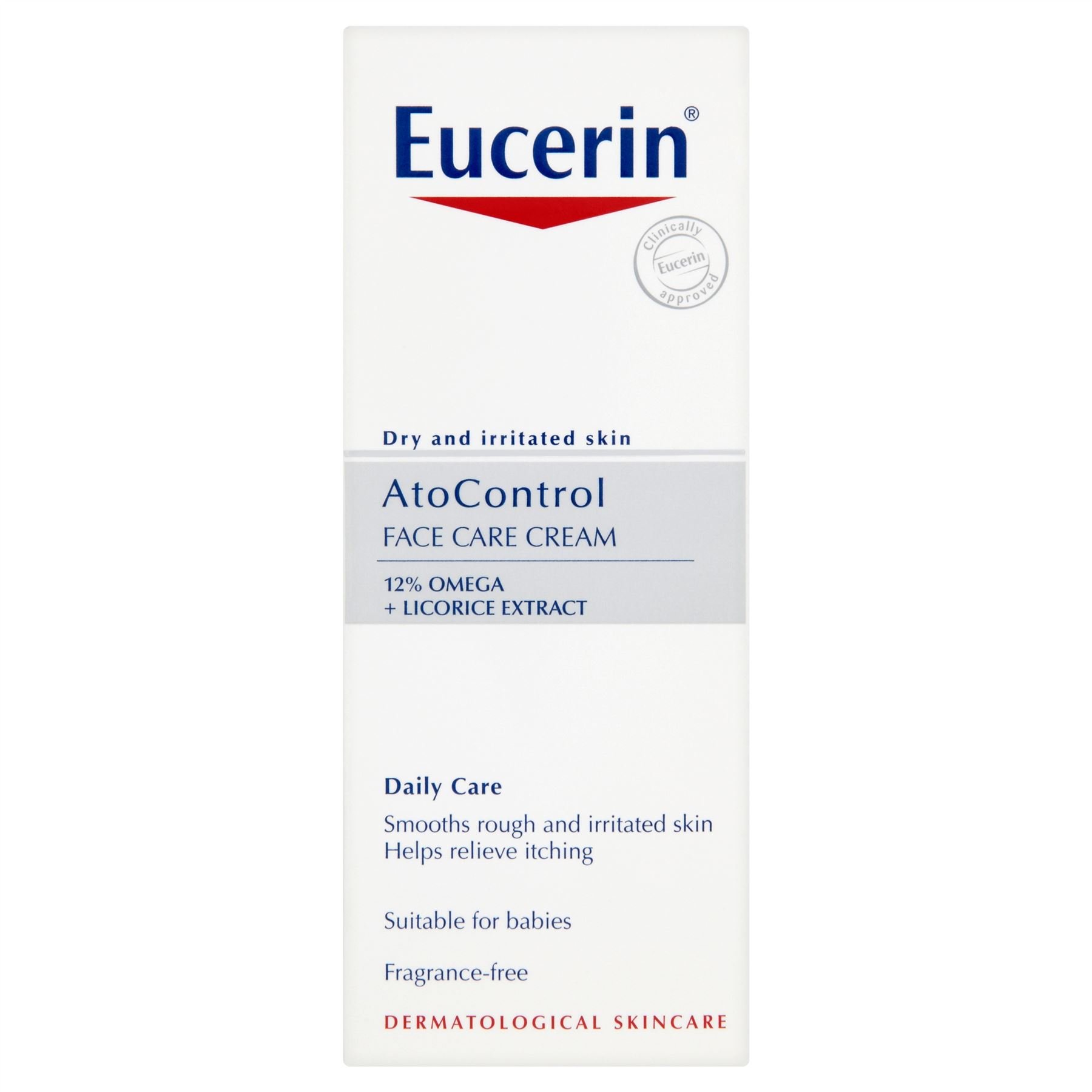 Eucerin AtoControl 50ml Facial Care Cream (3-pack). Clinically approved for dry and irritated skin - 12 omega unicorn extract - Daily care - Smoothes rough and irritated skin - Helps soothe irritated skin - Suitable for babies - Excellent base for contact lens wearers. Eucerin AtoControl skincare - Facial Care Cream for daily care. For irritated, itchy skin. Apply frequently to the face to minimize the risk of skin irritation and allergies. Paraben-free, fragrance-free, and colorant-free. A wider range of dry skin types is available. The effectiveness depends on the severity of dryness, which is often associated with rough, pronounced dryness, wrinkles, and redness. The skin barrier function is therefore typical for dry skin, which is more susceptible to the penetration of irritants and allergens. Innovation: Utilizing botanical ingredients, this formula combines highly concentrated omega fatty acids (primary oil and grape seed oil) and softens with licorice extract to replenish the skin, help restore its natural barrier, and make it more resilient. Regular use of this product noticeably improves the skin's appearance. Results: The cream moisturizes, softens, and reduces redness, providing relief. Skin feels soft and smooth. Clinical and dermatological studies confirm its high efficacy and skin compatibility – suitable even for atopic skin. Suitable for babies and children, even those with dry and atopic skin. The complete range of cleansing and skincare products is free of parabens, fragrances, and colorants. Directions: After cleansing, apply thoroughly and evenly to the face and neck in the morning. INGREDIENTS Aqua, Glycerin, Vitis Vinifera, Oenothera Biennis Oil, Capryl Capric Triglycerid, Cyclomethicone, Dimethicone, Pentaerythrityl Tetraisostearate, Triisostearine, Cetyl Alcohol, Glyceryl Stearate, PEG-40 Stearate, Glycyrrhiza Inflatatric Root Extract Cerolamide 3, Sodium Citrate, Palmitate ascorbyl, BHT, 1.2-Hexandiol, phenoxyethanol, pirocton-olamine.sensitivity_ _redness fine_lines_ _wrinkles lifting_ _firming daily_care. Aromathérapie.Eucerin AtoControl Lot de 3 crèmes pour le visage 50 mlDESCRIPTION DU PRODUIT DESCRIPTION DU PRODUIT Lot de 3 crèmes de soin visage Eucerin AtoControl 50 ml. Cliniquement approuvé pour une peau sèche et irritée - 12 omega extrait de licorne - Soin quotidien - Lisse la peau rugueuse et irritée - Aide à soulager les peaux irritées - Convient pour les bébés - Excellent maquillage de base adapté aux porteurs de lentilles de contact dermatologiques, skincare Eucerin AtoControl - Crème de soin du visage pour un soin quotidien. Irritée, irritée, poitrine Appliquer souvent la peau faciale afin de minimiser le risque d'irritation de la peau et d'allergies, sans paraben, parfum ou colorants ont été ajoutés plus et plus de choix de la peau sèche variée. Dépend sur le degré de sévérité de sécheresse des tissus cutanés, est rough, prononononcé pour les cheveux, les rides et les rougeurs. La fonction de barrière cutanée est donc typique pour la peau sèche et présente un risque plus élevé de pénétration des irritants et des allergènes. Innovation : utilise les ingrédients d'origine botanique, la formule avec une combinaison d'acides gras oméga très concentrés (huile primaire et huile de graines de grape ) et adoucit l'extrait de Licorice pour replénir la peau, aider à restaurer sa barrière naturelle, la rendre plus résistante. L'utilisation régulière de la peau est remarquablement améliorée. Résultats : la crème hydratante, adoucit et réduit le rougeur. Il est soulagé. La peau est douce et lisse à la fois. Des études cliniques et dermatologiques confirmées : très bonne efficacité et compatibilité avec la peau – convient à la peau même atopique. Convient pour les bébés et les enfants, même avec une peau sèche et atopique. La gamme complète de produits nettoyants et de soins est exempte de parabens, de parfums et de colorants. Conseils : après le nettoyage, appliquez soigneusement le matin et uniformément sur le visage et le cou. INGRÉDIENTS Aqua, Glycerin, Vitis Vinifera, Oenothera Biennis Oil, Capryl Capric Triglycerid, Cyclomethicone, Dimethicone, Pentaerythrityl Tetraisostearate, Triisostearine, Cetyl Alcohol, Glyceryl Stearate, PEG-40 Stearate, Glycyrrhiza Inflatatric Extrait de root de root Cerolamide 3, citrate de sodium, palmitate d'ascorbyl, BHT, 1.2-Hexandiol, phénoxyéthanol, pirocton-olamine.sensitivity_ _redness fine_lines_ _wrinkles lifting_ _firming daily_care. Aromathérapie.