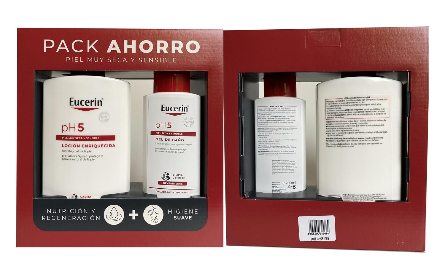 DESCRIPTION DU PRODUIT Eucerin La lotion enrichie Ph5 est un lait extra-hydratant et efficace contre les peaux sensibles et sèches grâce à sa haute teneur en lipides liés à la peau. Une texture crémeuse, riche et nourrissante apporte à la peau endommagée les ingrédients de base pour la régénérer à nouveau. Elle donne une profonde régénération, grâce à l'apport de 3 de dexpanthénol (pro-vitamine B5) qui pénètre jusqu'à la couche basale épidermique en agissant sur le rétablissement des cellules endommagées. Protection cutanée, grâce à la vitamine E pure (a-tocophérol) qui agit comme un puissant antioxydant contre les radicaux libres.