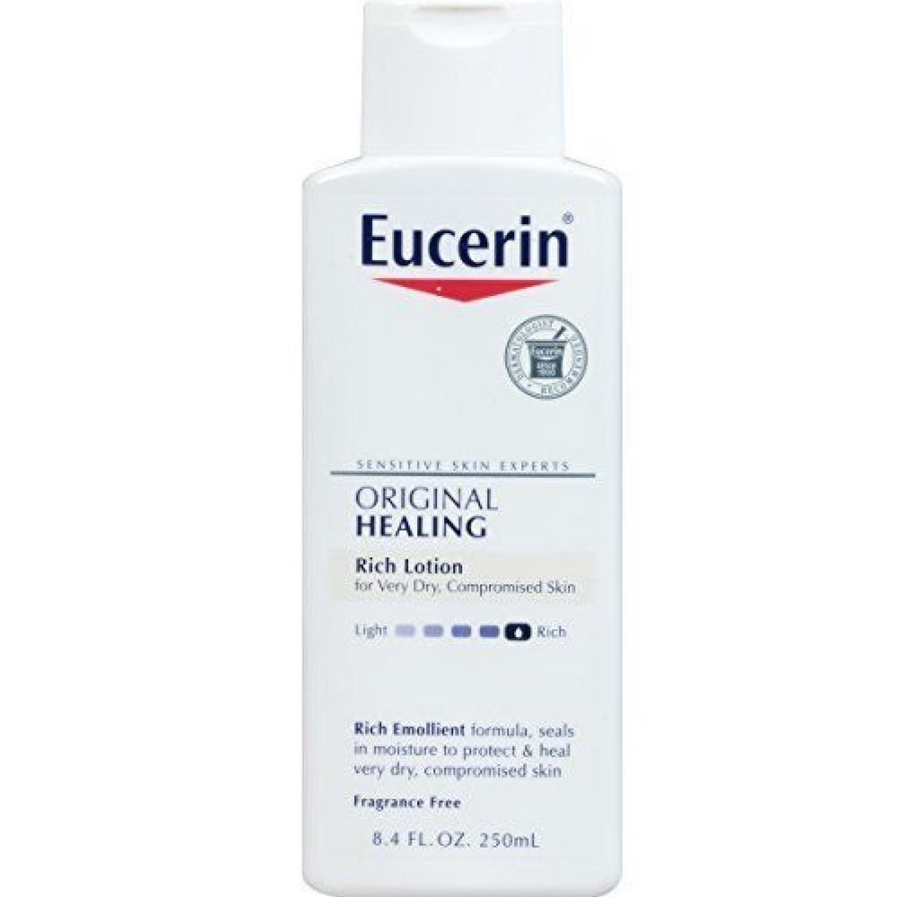 Eucerin original moisturizing Lotion for dry and sensitive skin, contain minimal ingredients for maximum safety, mild formula can be used on children. High quality ingredients will help keep skin healthy. Safe for sensitive skin, Fragrance Free, non-comedogenic and non-irritating, provide long lasting moisturization to relieve extremely dry, sensitive skin. Rich, soothing formulas seal in moisture to help heal very dry skin. Create an occlusive seal that protects skin impaired by disease (atopic dermatitis, diabetes or psoriasis) and even enhances the absorption of topical medications.