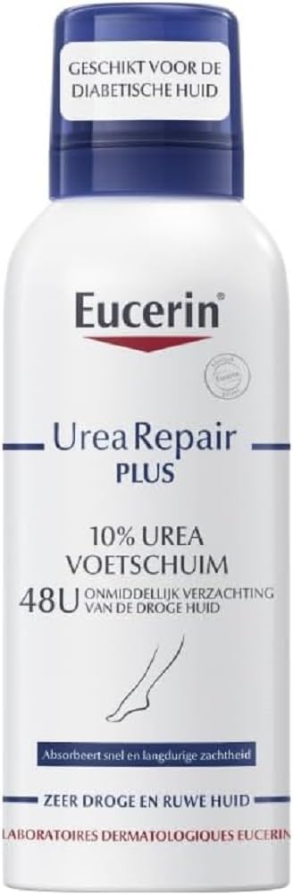 Eucerin UREAREPAIR PLUS 10% Urea Foot Mousse is an ultra-lightweight moisturizer designed to deliver an immediate soothing sensation, while providing intense, long-lasting hydration. Thanks to its clinically proven formula, this mousse leaves foot skin smoothed, reducing calluses and delaying dryness for up to 48 hours. Its ultra-light texture penetrates quickly, providing total comfort all day long. Enriched with 10% urea, glycerol and other moisturizing agents, this foot mousse provides intense, long-lasting hydration, helping to regenerate foot skin while reducing roughness. Its formula also offers an immediate sensation of softness and soothing, providing relief for dry, damaged feet. What's more, UREAREPAIR PLUS foot mousse is easy to apply, leaving skin smooth and non-greasy. For optimum results, apply the foam daily to clean, dry skin, paying particular attention to callus-prone areas. This non-greasy formula is rapidly absorbed, leaving skin soft and well hydrated. What's more, its ability to smooth skin and reduce calluses makes it an ideal choice for those seeking an effective solution for dry, damaged feet. INDICATIONS Feet care. Very dry and rough skin. INGREDIENTS Aqua, Urea, Glycerin, Decyl Oleate, Isobutane, Panthenol, Alcohol Denat., Stearyl Alcohol, Tapioca Starch, Glyceryl Stearate SE, Propane, Helianthus Annuus Seed Oil, Ceramide NP, Ethylhexyl Cocoate, Glycine, Butane, Arginine HCL, Sodium PCA, Decylene Glycol, Sodium Lactate, Sodium Citrate, Sodium Cetearyl Sulfate, Phenoxyethanol, Methyl Benzoate, Citric Acid, Carnitine, Sodium Chloride, Cholesterol, Alanine, Lactic Acid, Pantolactone, Tocopherol, Parfum. DIRECTIONS Shake well before use. Hold upright while spraying in hand. Apply daily to your feet.Pressurized container, may burst if heated. Keep away from heat, hot surfaces, sparks, open flames and all other ignition sources. Do not smoke. Do not puncture or burn, even after use. Protect from sunlight. Do not expose to temperatures above 50°C. Only recycle empty packaging. Keep out of reach of children. Contains 6% by mass of flammable components. See moreMoisturising.