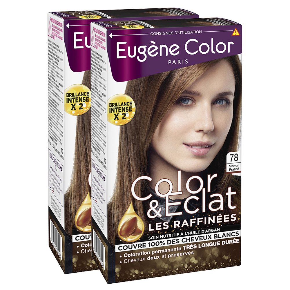 Eugène Color - Color Eclat - Les Raffinées - N 78 Marron Praliné - Coloration Permanente brillance Longue Durée à l'Huile d'Argan - Lot de 2 Marron Praliné 78