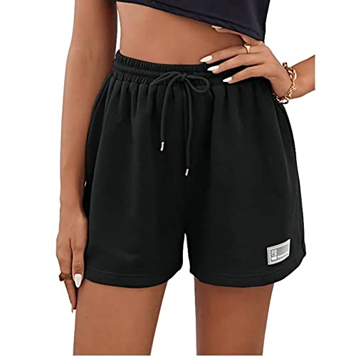 EUISVI Women's Summer Casual Drawstring Waist Sweat Shorts Athletic Running Gym Track Shorts with Pockets Large Black