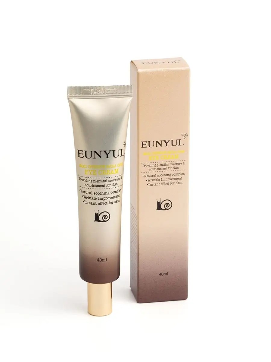 Крем антивозрастной для ухода за кожей век и зоны вокруг глаз. EUNYUL Snail Intensive Facial Care Eye Cream, 40ml. Корейская уходовая косметика. Антивозрастной крем для области вокруг глаз Корея станет надежным помощником в борьбе с морщинами и темными кругами. Крем увлажняющий для век подходит для всех типов кожи и обеспечивает комплексный уход. Омолаживающий крем разглаживает морщины, осветляет кожу вокруг глаз и помогает избавиться от пигментации. В основе формулы – интенсивный уход и омоложение. Муцин улитки, известный своими регенерирующими свойствами, активно борется с возрастными изменениями и интенсивно увлажняет нежную кожу век, предотвращая сухость и дискомфорт. Оливковое масло обеспечивает глубокое питание и создает защитный барьер, оберегая от негативного воздействия окружающей среды. Экстракт розы деликатно смягчает и повышает эластичность, возвращая коже тонус и упругость. Корейский крем от морщин помогает уменьшить отеки под глазами и осветлить мешки и синяки под глазами. Он насыщает кожу влагой, обеспечивая ей необходимый уровень увлажненности на весь день. Корейский крем для век от отеков и синяков – комплексное решение для преображения кожи вокруг глаз от морщин, мешков и кругов под глазами. Он интенсивно увлажняет, питает и защищает кожу, возвращая ей молодость и свежесть, обладает лифтинг эффектом. При регулярном использовании вы заметите, как кожа становится более гладкой, упругой и сияющей без черных кругов. Крем для глаз подходит для всех типов кожи, в том числе и для проблемной. Применение: нанести небольшое количество крема вокруг глаз. Рекомендуется к использованию в комплексе с серией корейской косметики для ухода за лицом EUNYUL.