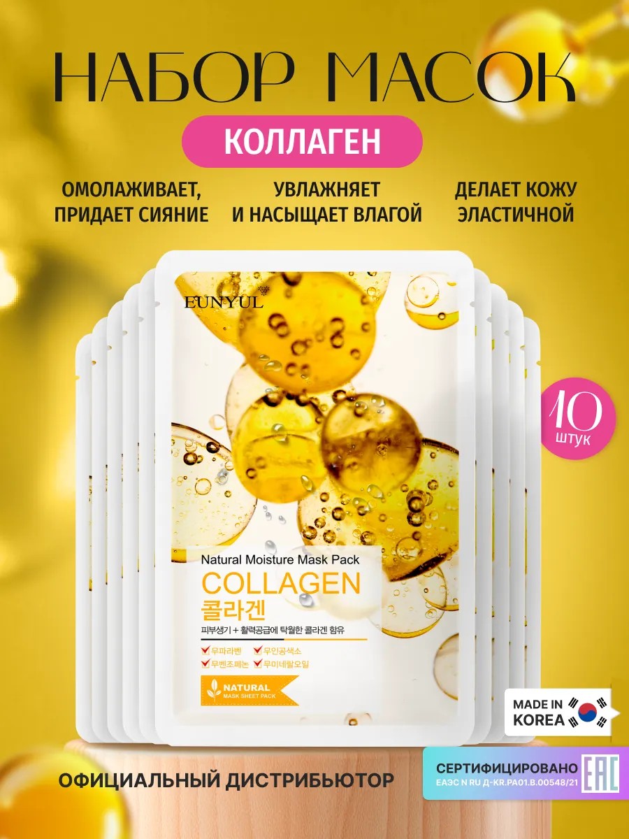 EUNYUL Маски для лица тканевые набор Корея с коллагеном 22мл х10 шт